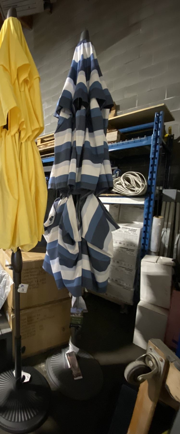 BLUE STRIPED TREASURE GARDEN PATIO UMBRELLA WITH GREY UMBRELLA STAND