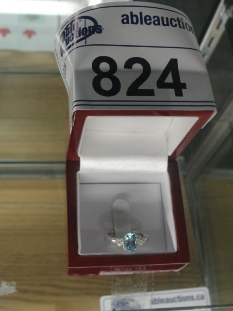 BLUE TOPAZ DINNER RING SET WITH 14 ROUND CUT DIAMONDS