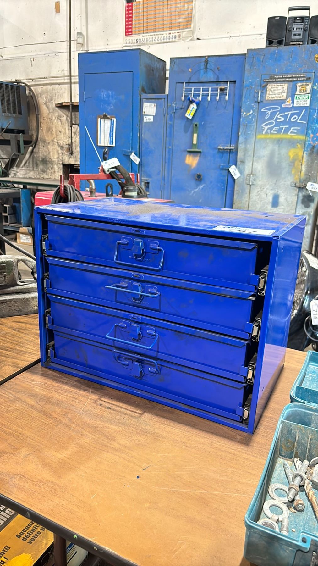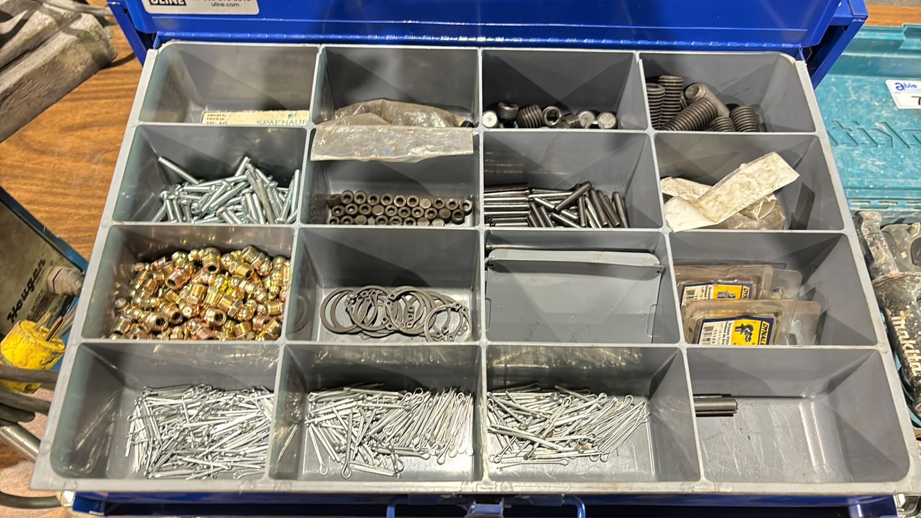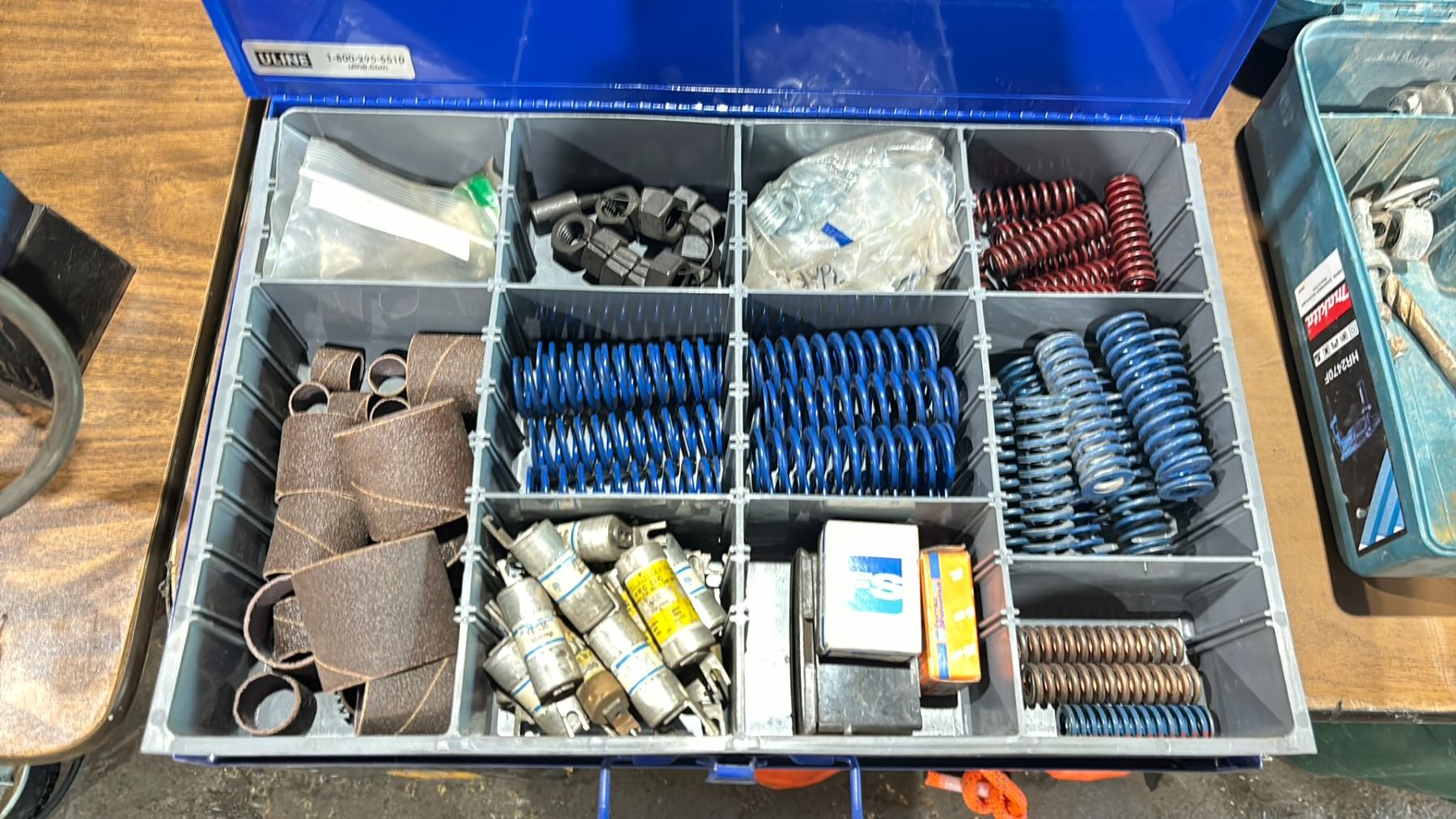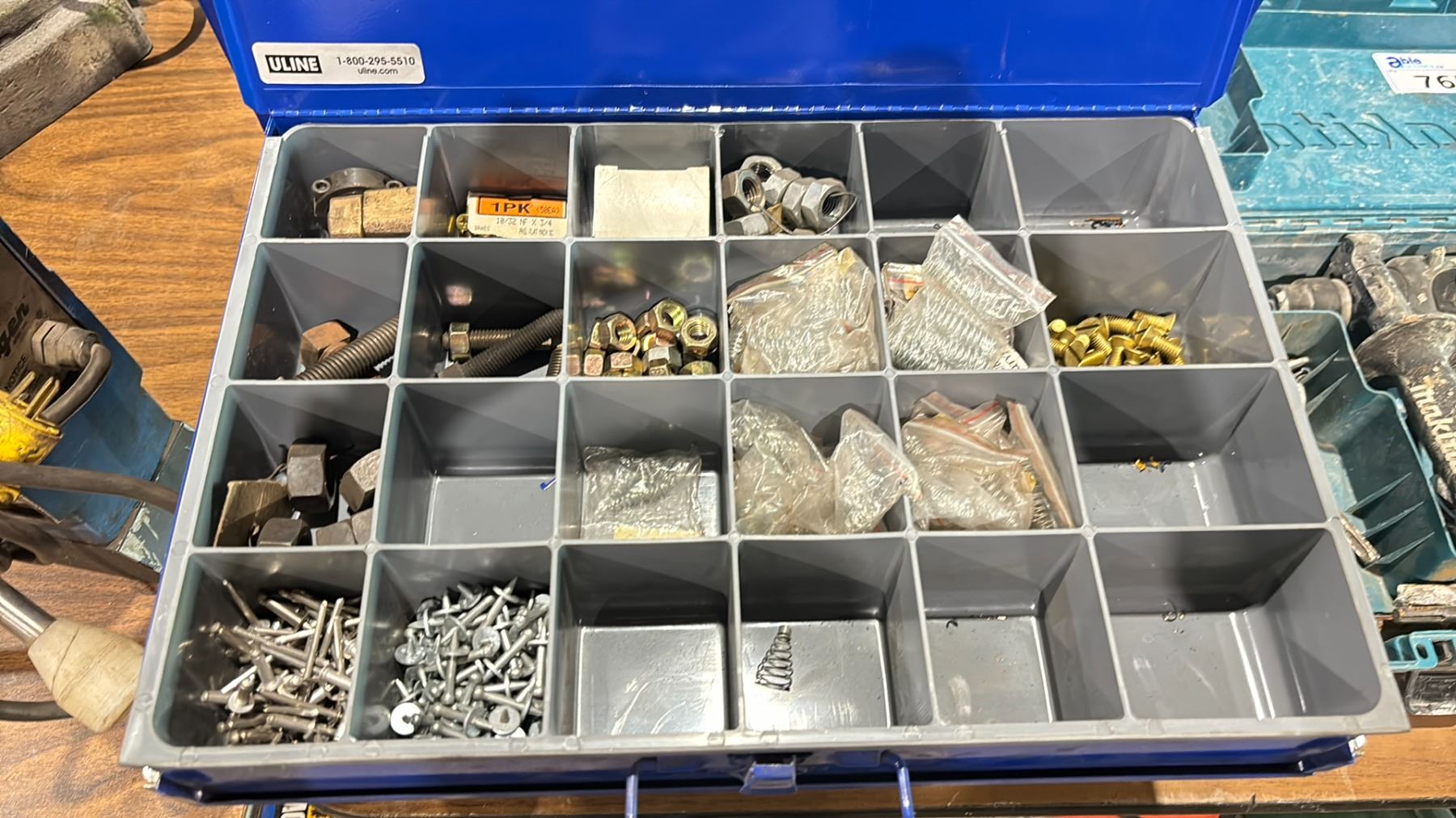 BLUE ULINE 4 DRAWER PARTS ORGANIZER WITH CONTENTS