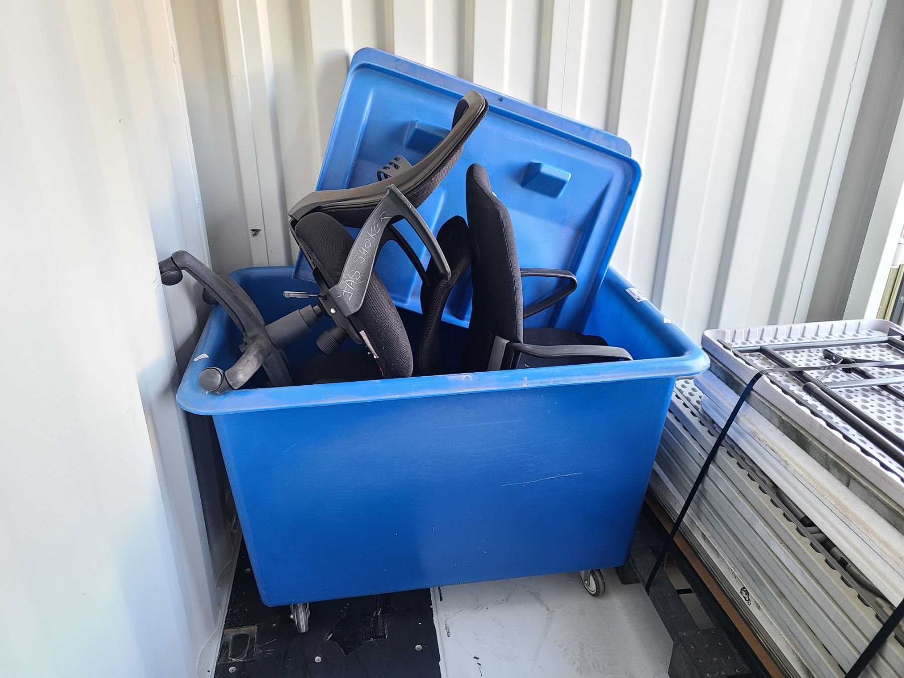 BLUE ULINE MOBILE WAREHOUSE POLY BOX TRUCK WITH CONTENTS