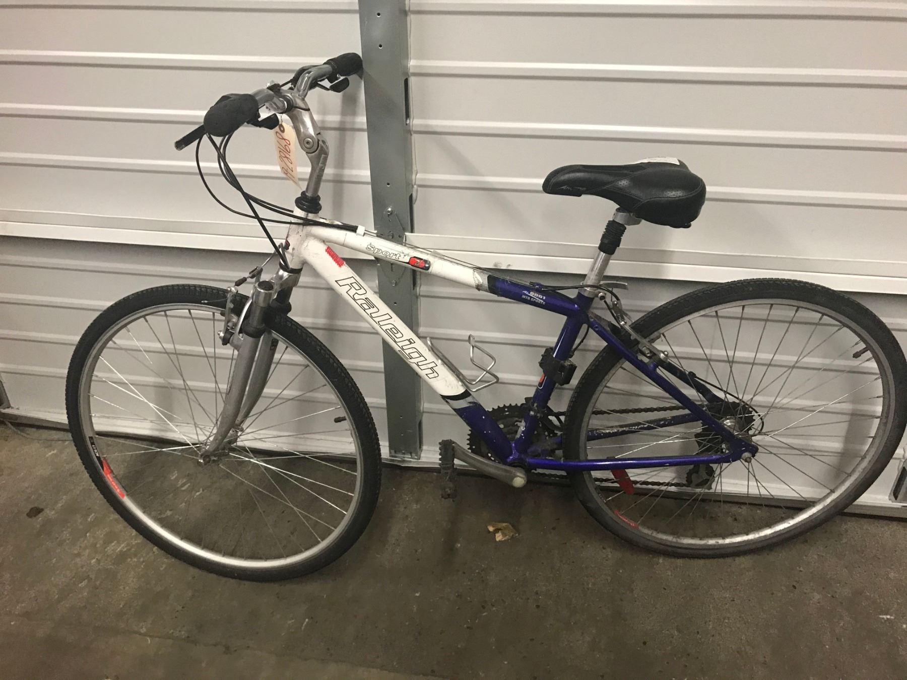 BLUE/WHITE RALEIGH MOUNTAIN BIKE