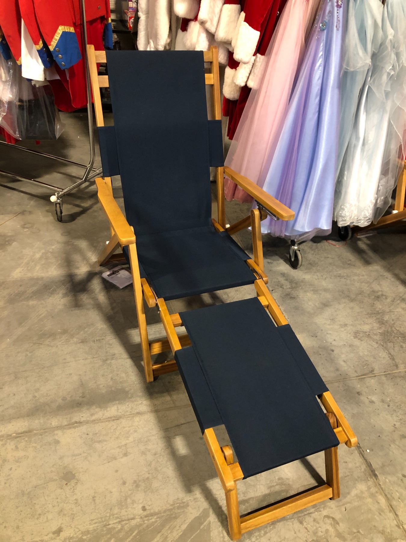 BLUE WOODEN FOLDING PATIO LOUNGE CHAIR