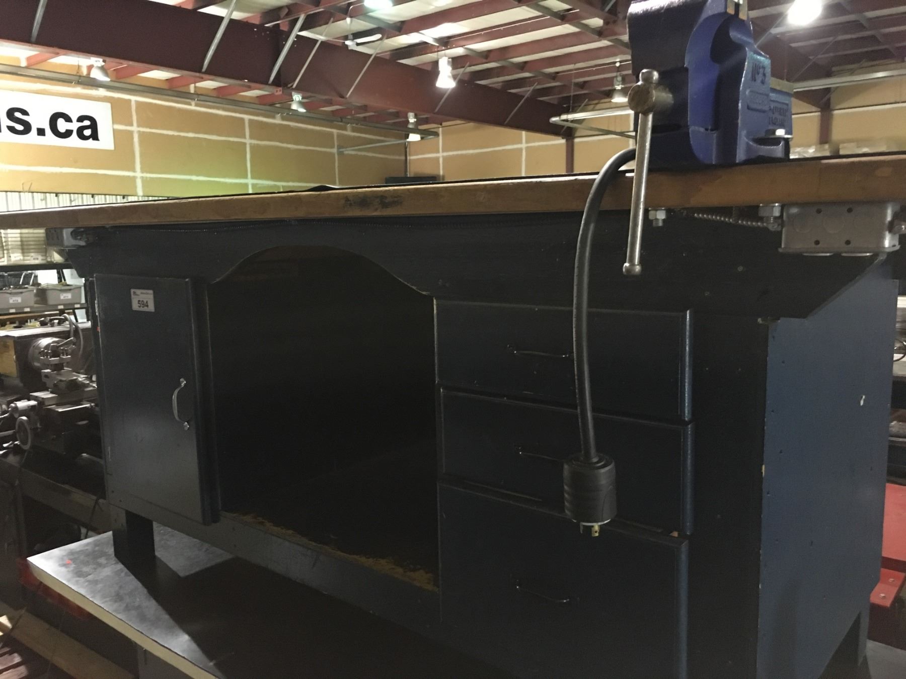 BLUE WOODEN HEAVY DUTY POWERED WORK BENCH WITH VICE
