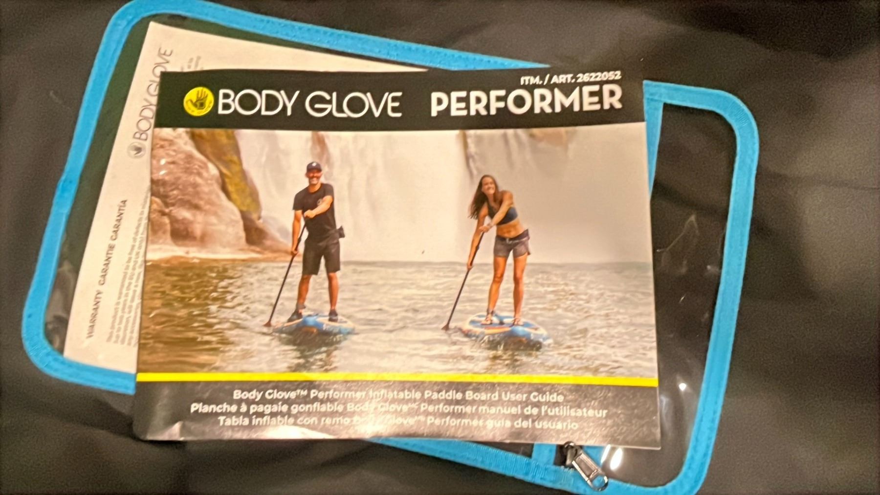 BODY GLOVE PERFORMER SERIES INFLATABLE PADDLE BOARD W/BAG AND ACCESSORIES