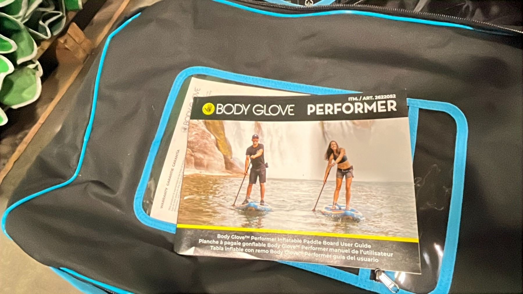 BODY GLOVE PERFORMER SERIES INFLATABLE PADDLE BOARD W/BAG AND ACCESSORIES