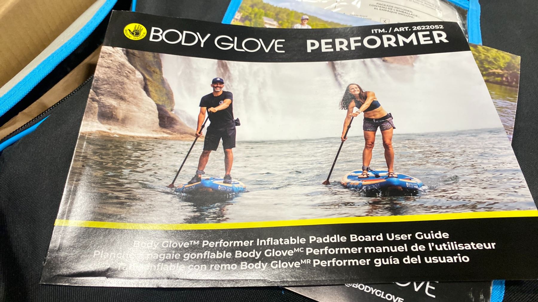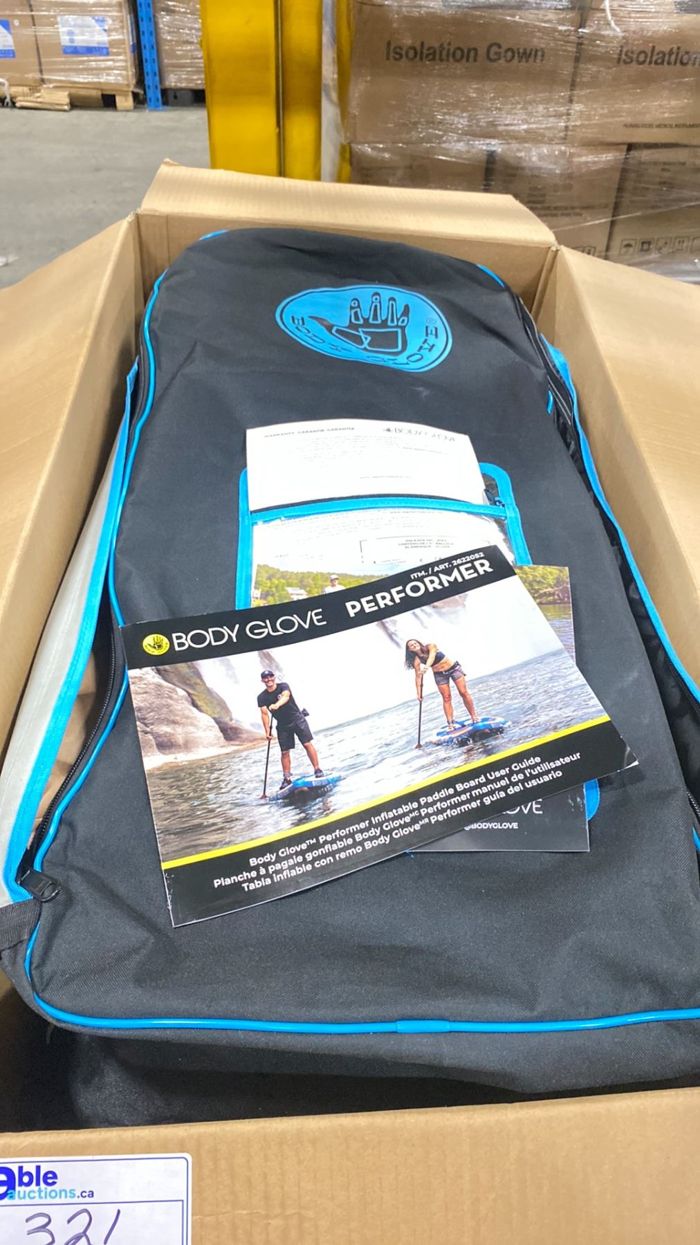 BODY GLOVE PERFORMER SERIES INFLATABLE PADDLE BOARD W/BAG AND ACCESSORIES