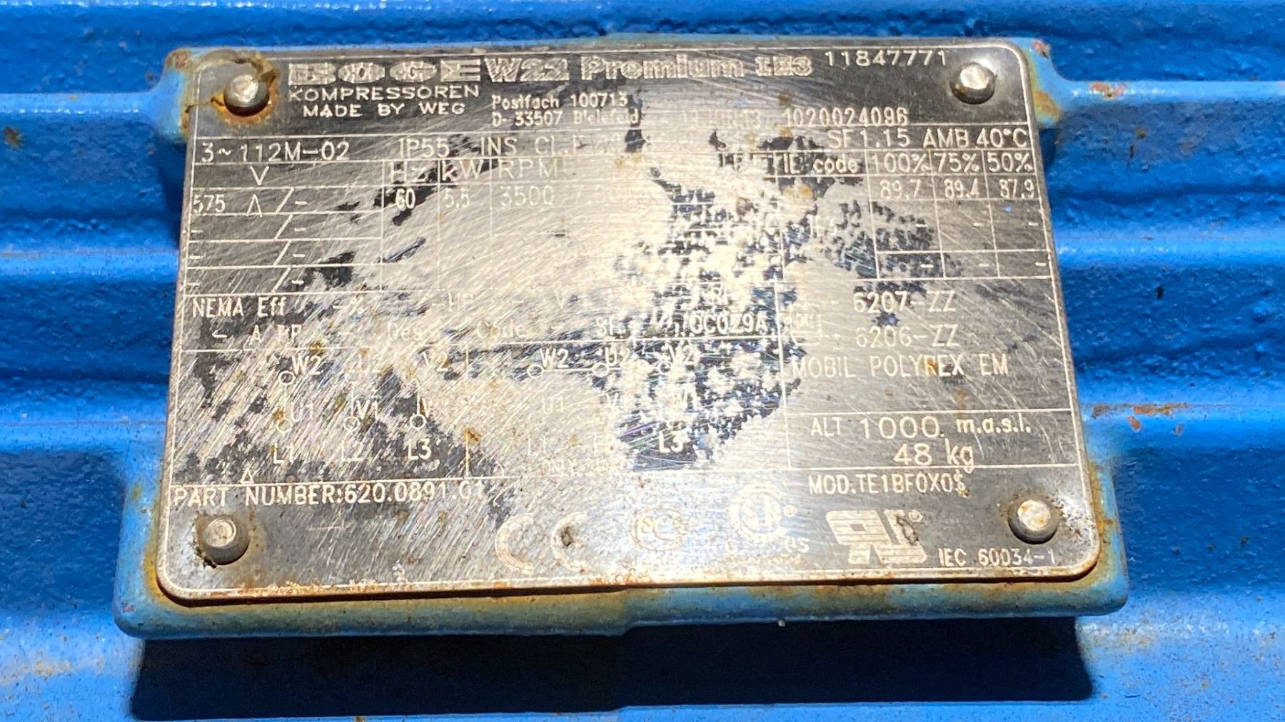 BOGE C 7.5LN BLUE 7.5HP ELECTRICAL INDUSTRIAL VERTICAL TANK AIR COMPRESSOR *DISMANTLED*