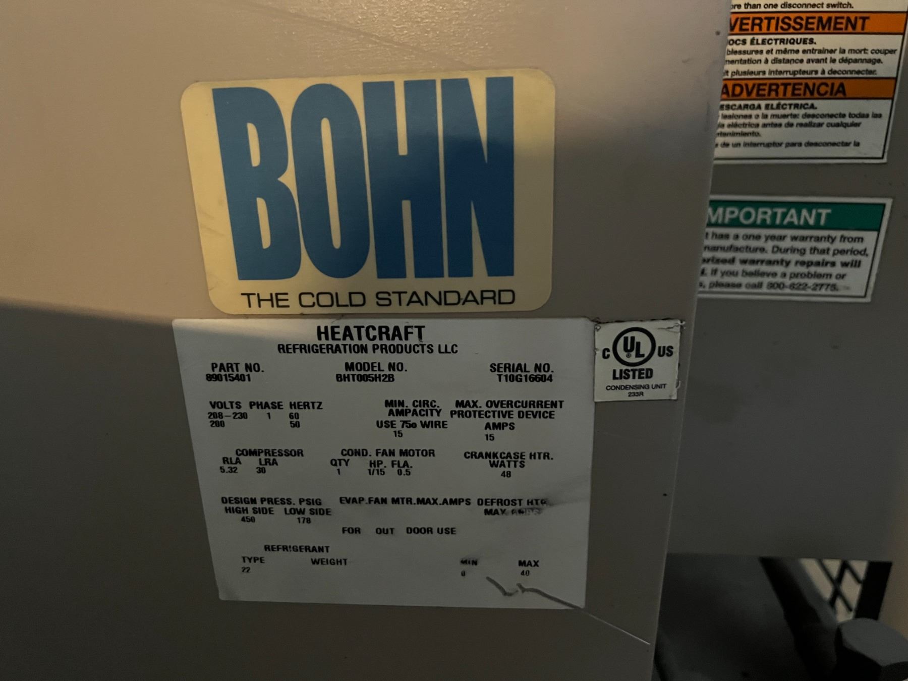 BOHN REFRIGERATION UNIT MODEL BHT005H2B. 220V SINGLE PHASE