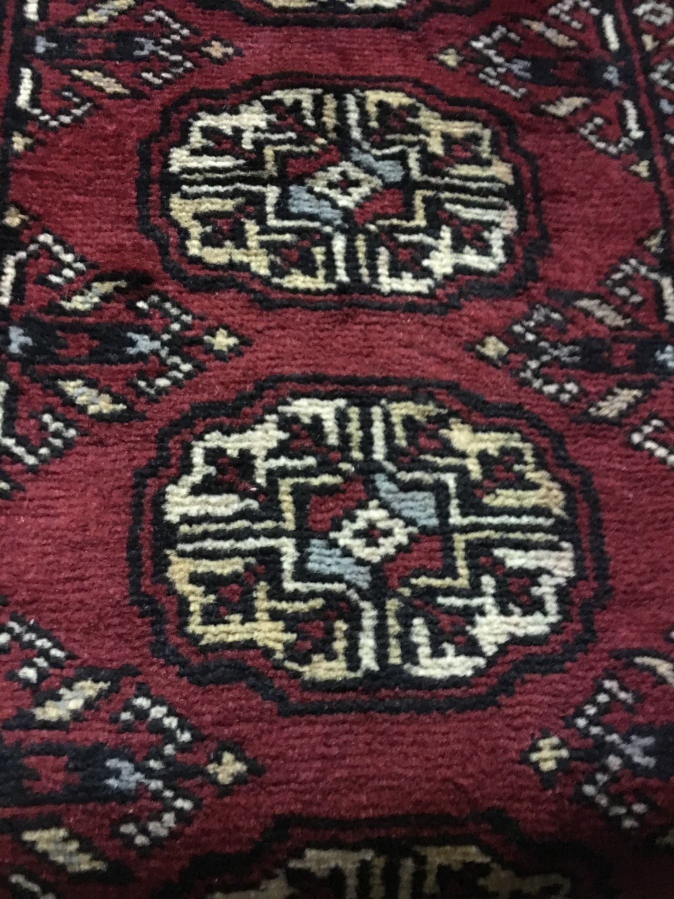 BOKHARA WOOL 3' X 1' BURGUNDY, WHITE, BLACK HAND WOVEN PERSIAN AREA RUG