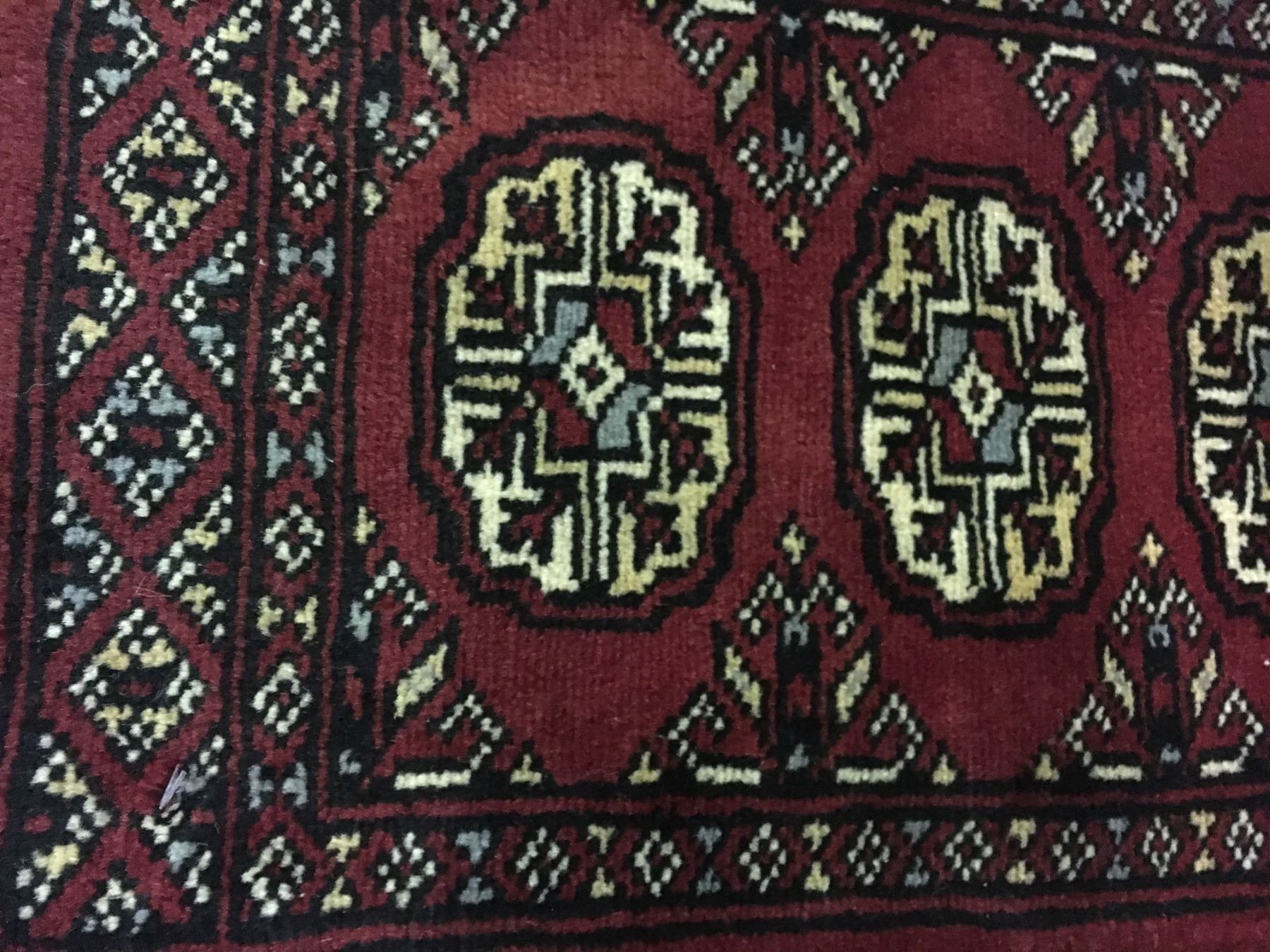 BOKHARA WOOL 3' X 1' BURGUNDY, WHITE, BLACK HAND WOVEN PERSIAN AREA RUG GALLERY PRICE $170