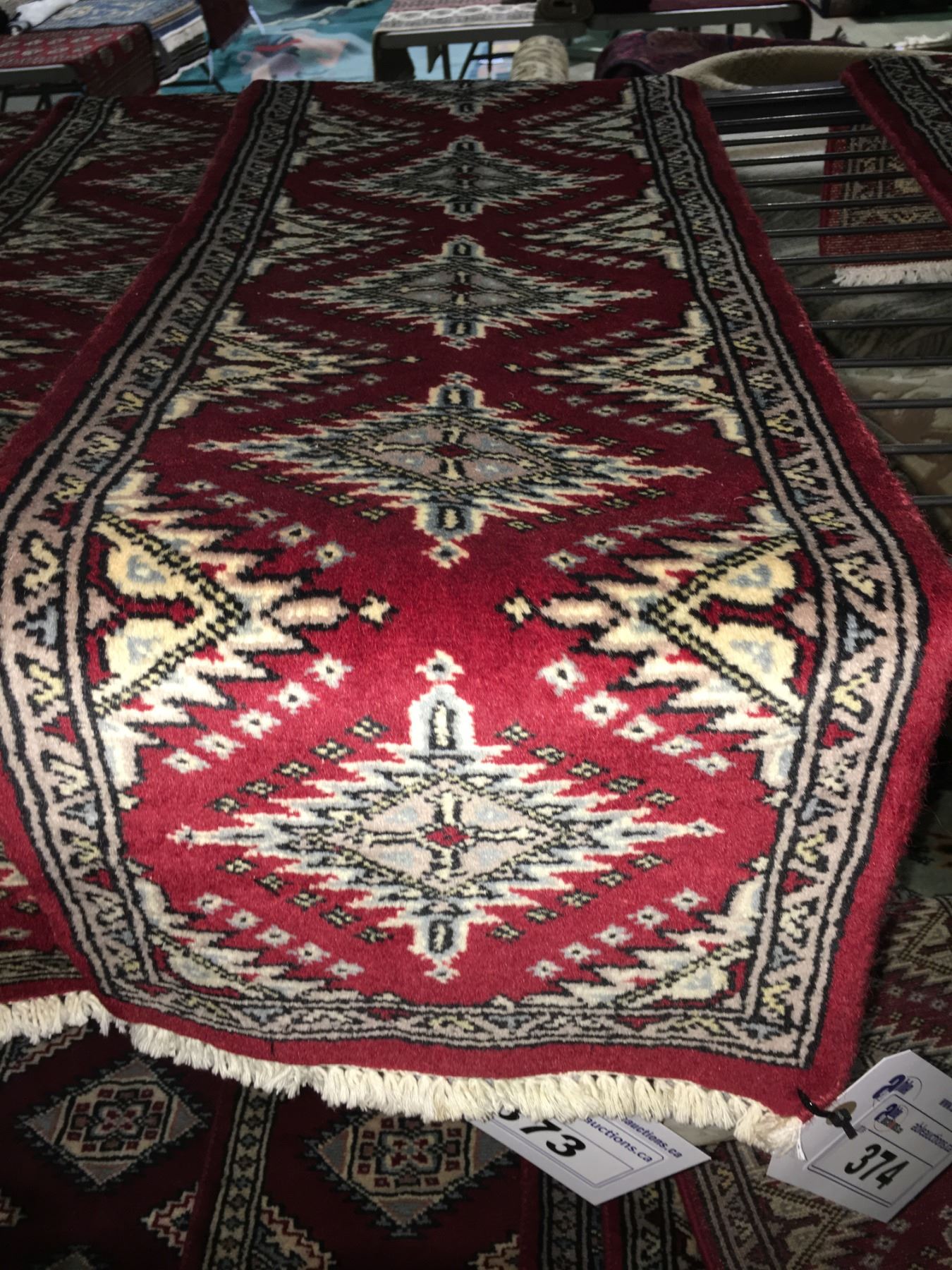BOKHARA WOOL 3' X 1' RED , CREAM, BLACK PERSIAN AREA RUG GALLERY PRICE $ 220