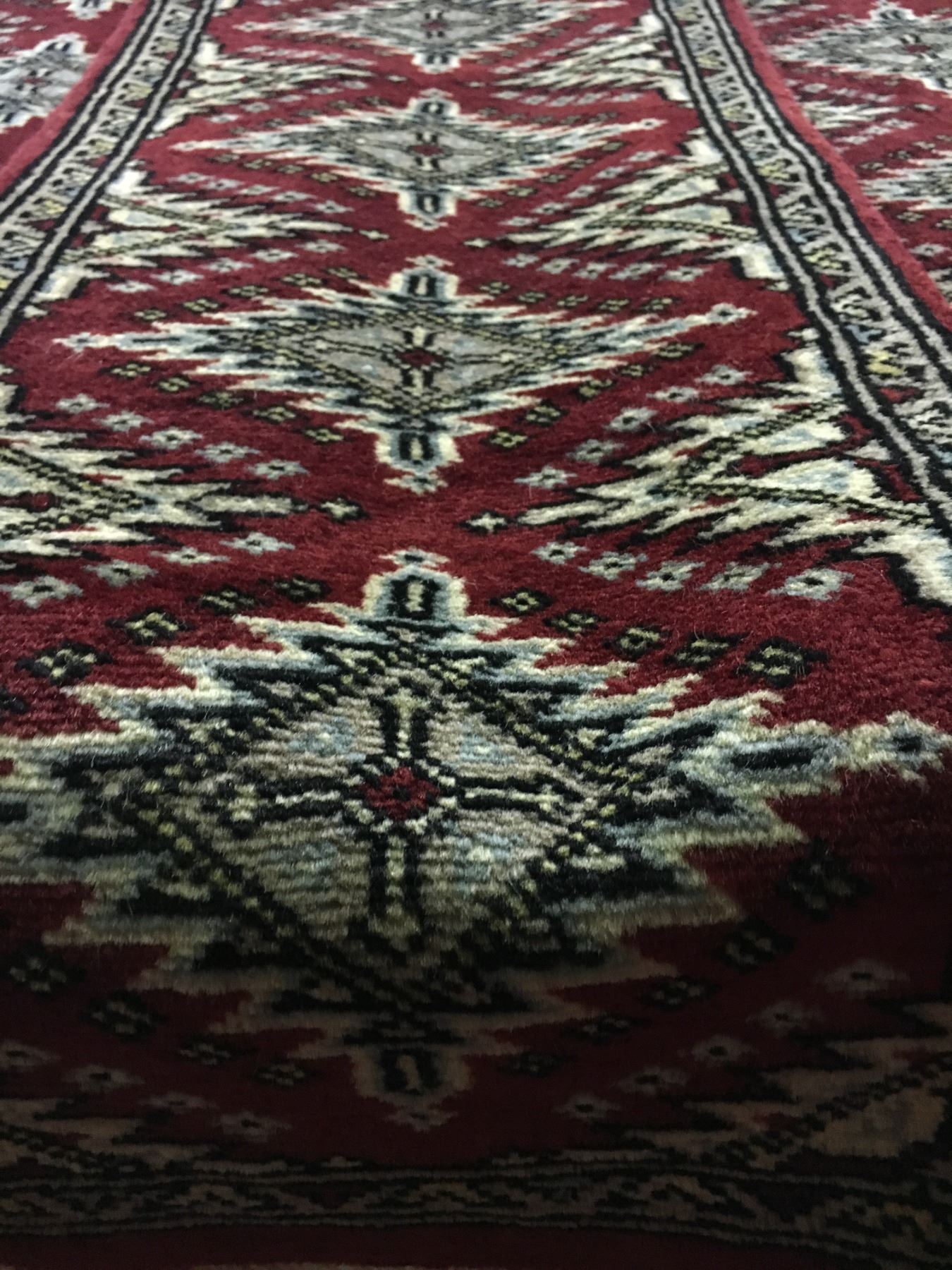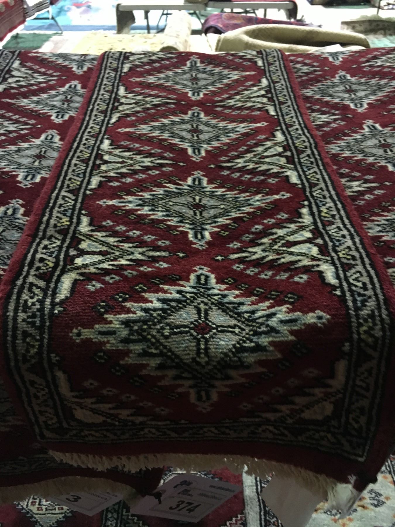 BOKHARA WOOL 3' X 1' RED , CREAM, BLACK PERSIAN AREA RUG GALLERY PRICE $ 170