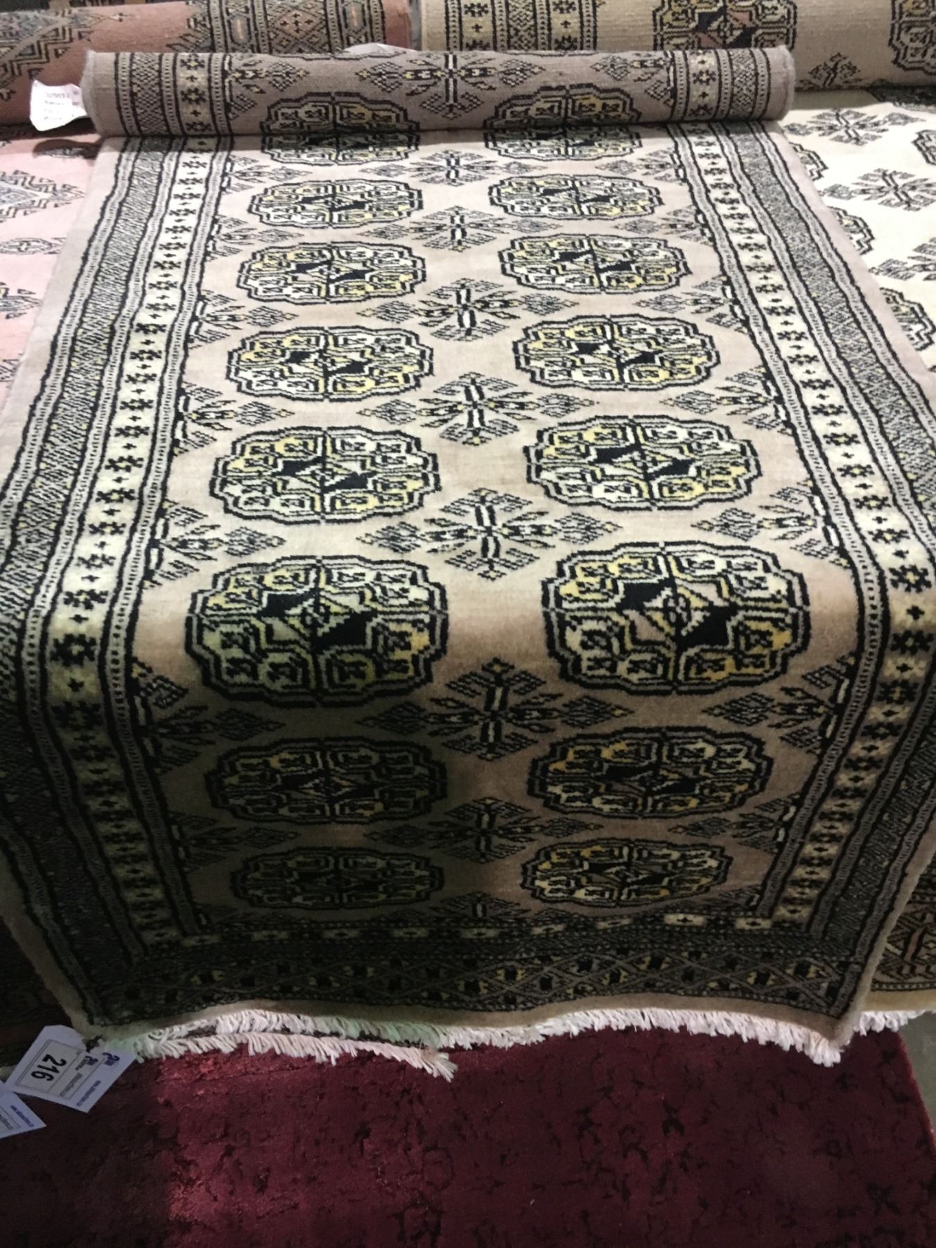 BOKHARA WOOL 5'9" X 2' BEIGE, BLACK, GOLD HAND WOVEN PERSIAN AREA RUG GALLERY PRICE $880