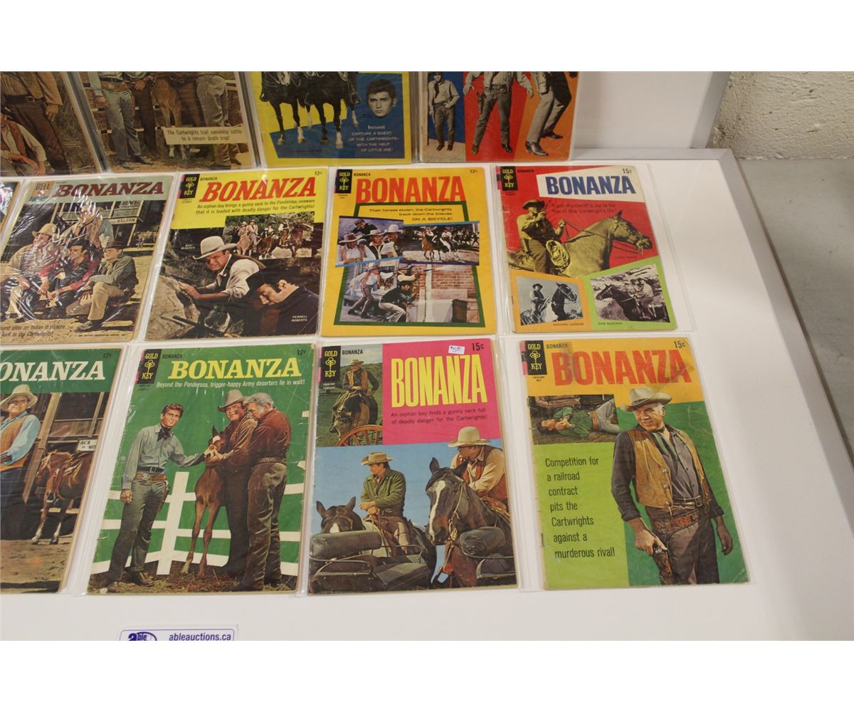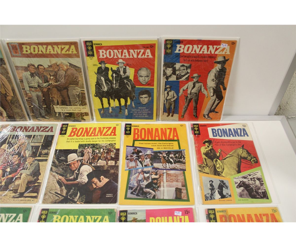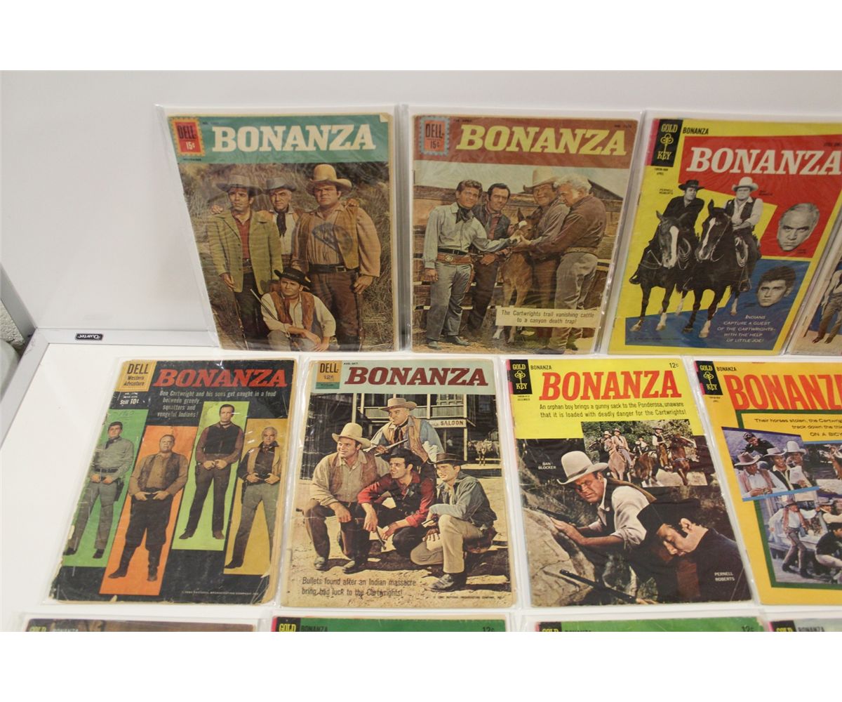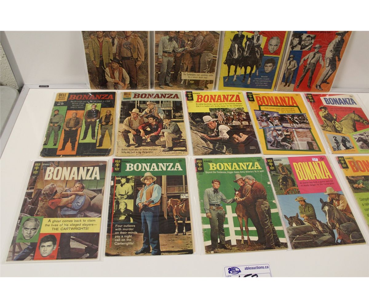 BONANZA #1110 (#1) (1960) PLUS 13 MORE BONANZA 10, 12 AND 15 CENT COVERS ALL IN LOW GRADE AVERAGE. 14 WESTERN DELL BOOKS TOTAL