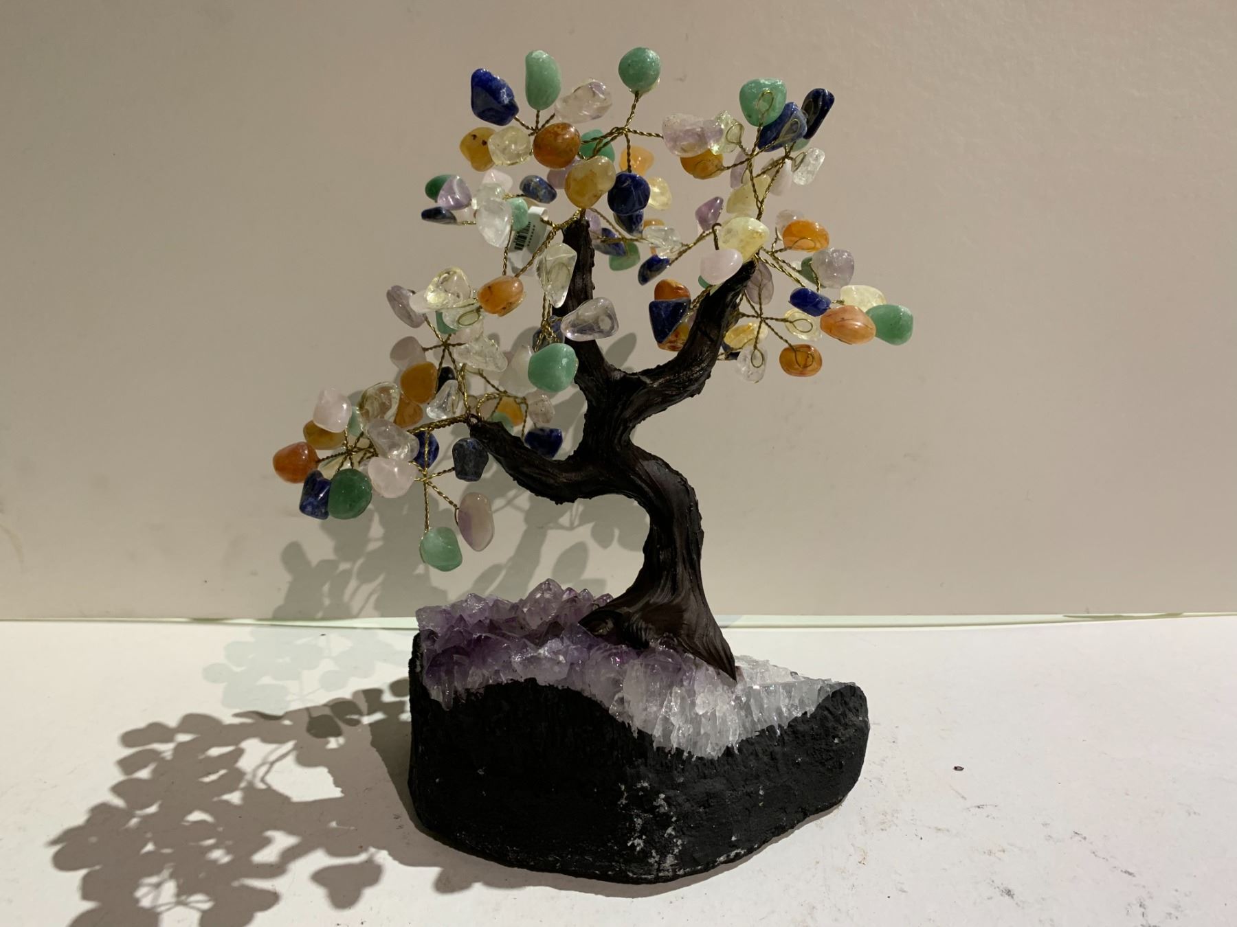 BONSAI CHAKRA TREE ON AMETHYST BASE RETAIL $1,800, 10"