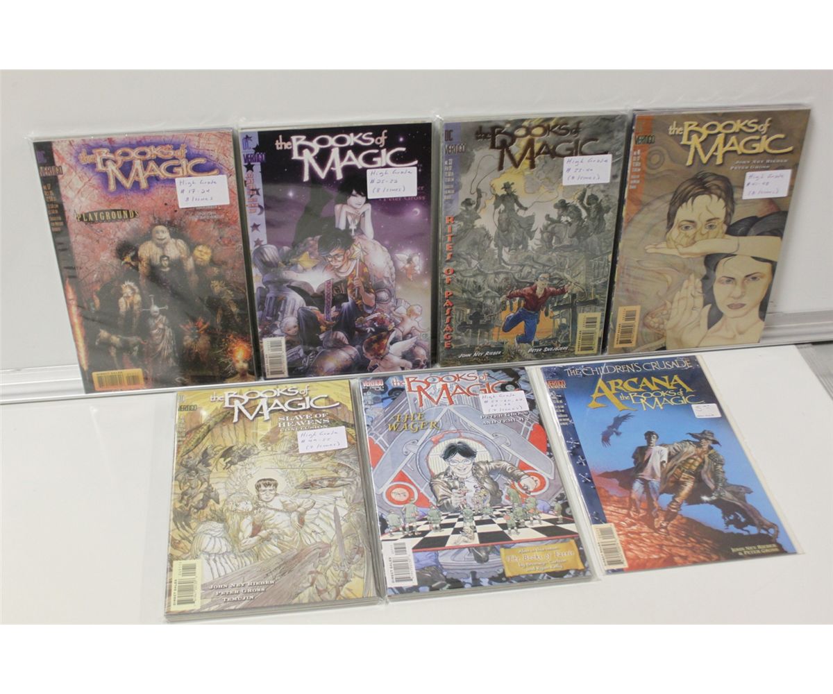 BOOKS OF MAGIC (1994) NEAR COMPLETE SERIES.  63 ISSUES BETWEEN #1-66, INCLUDING #1-55 CONSECUTIVE.  HIGH GRADE.