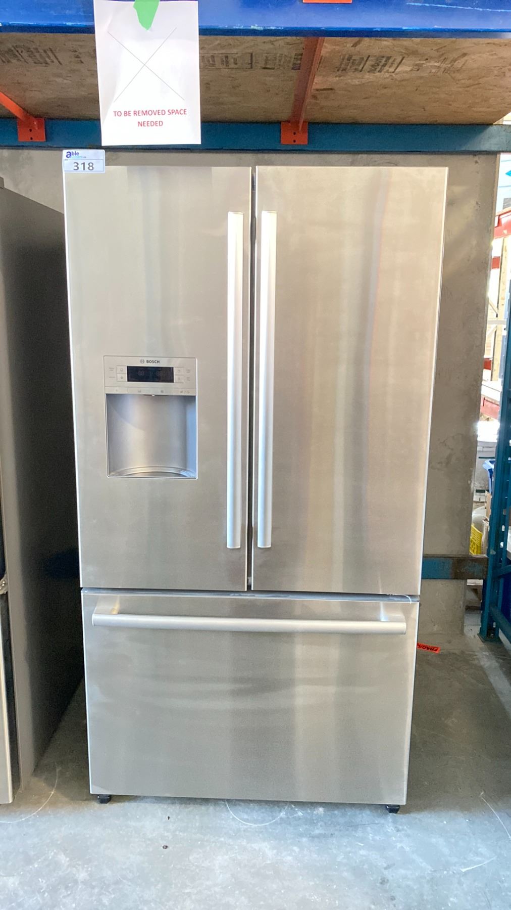 BOSCH B26FT70SMS STAINLESS STEEL FRENCH DOOR FRIDGE WITH BOTTOM MOUNT FREEZE R 29"D X 70"H X 36"W 26 CU FT ICE & WATER IN DOOR