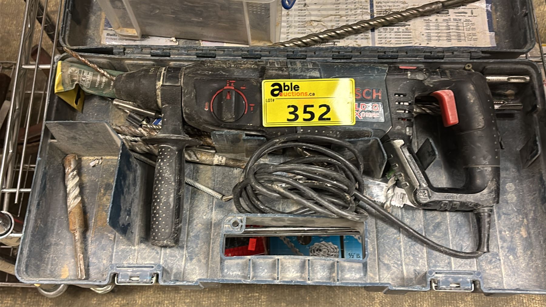 BOSCH BULLDOG XTREME VARIABLE SPEED ELECTRIC ROTARY HAMMER IN A HARD TRANSPORT CASE