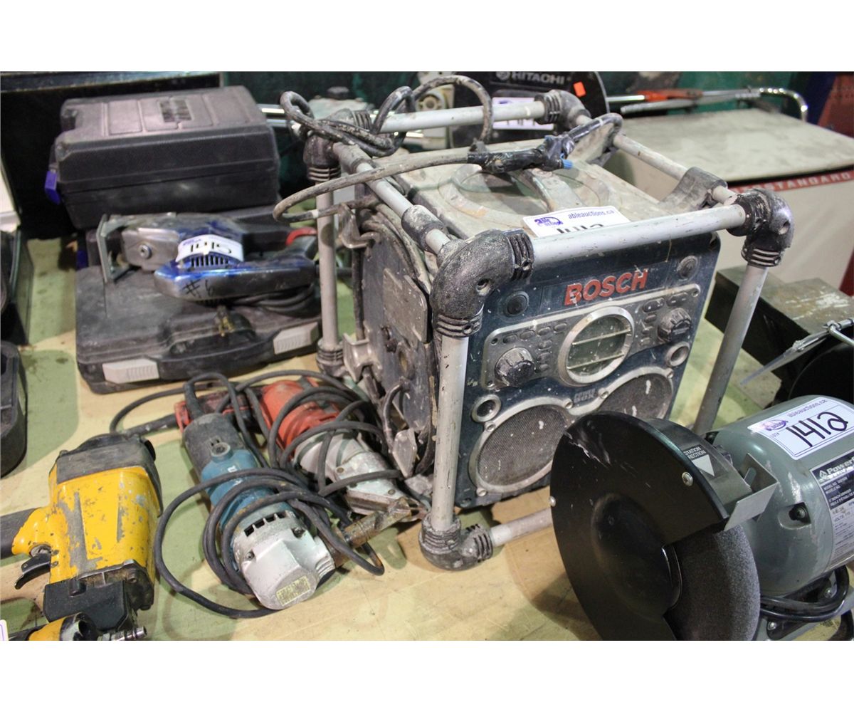 BOSCH POWERBOX RADIO, MILWAUKEE TIN SNIP & MAKITA CUTTING TOOL
