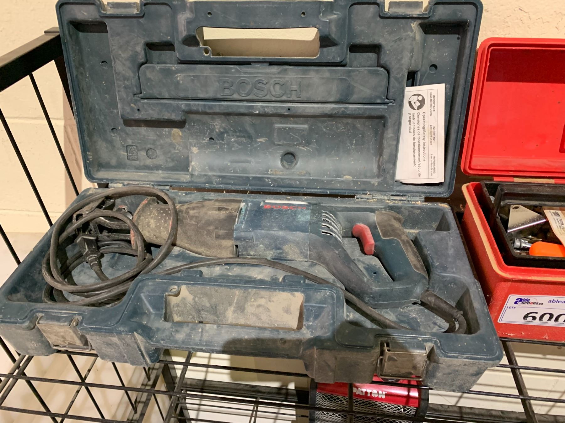 BOSCH RECIPROCATING SAW AND TOOL BOX WITH CONTENTS
