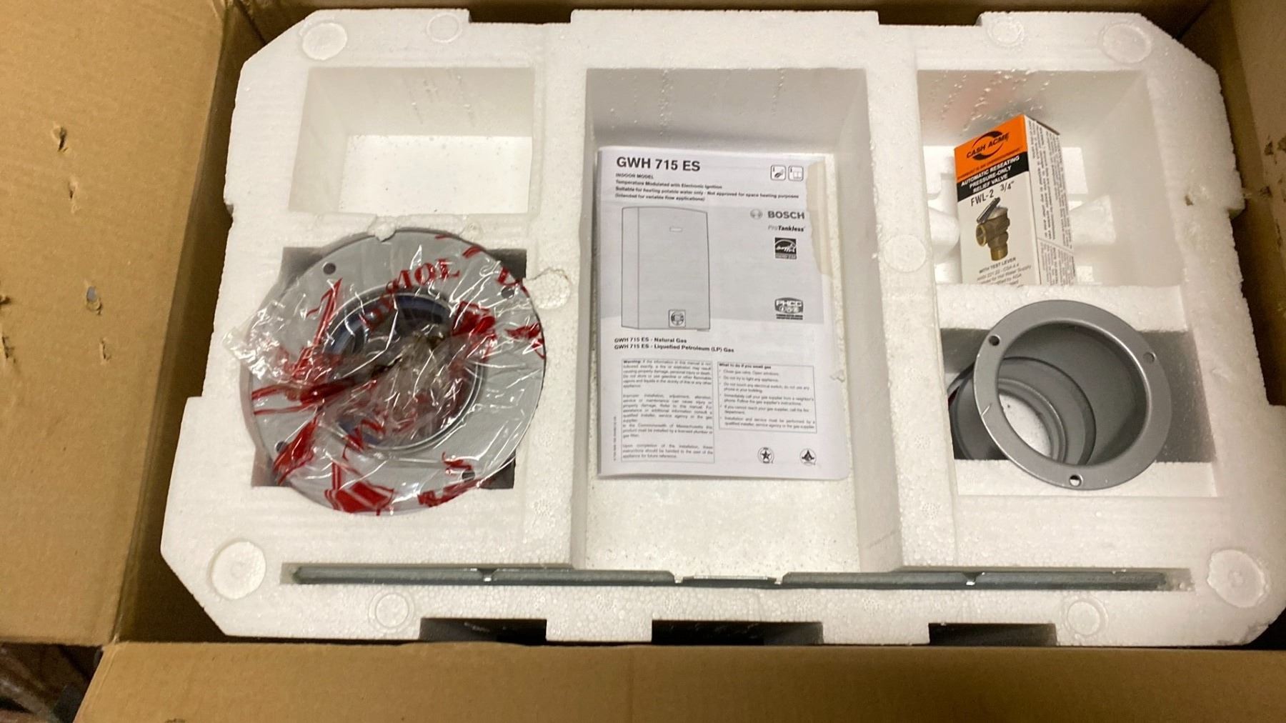 BOSCH TANKLESS GAS WATER HEATER MODEL GWH 715 ES N. NEW IN BOX.