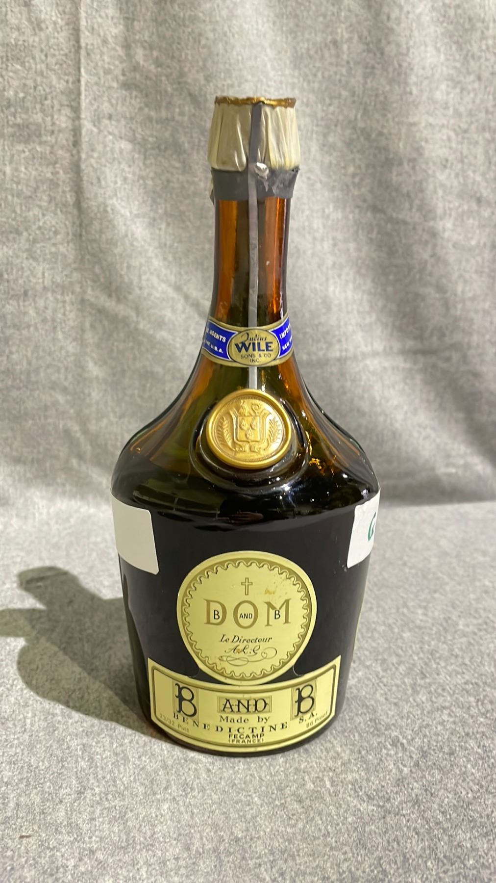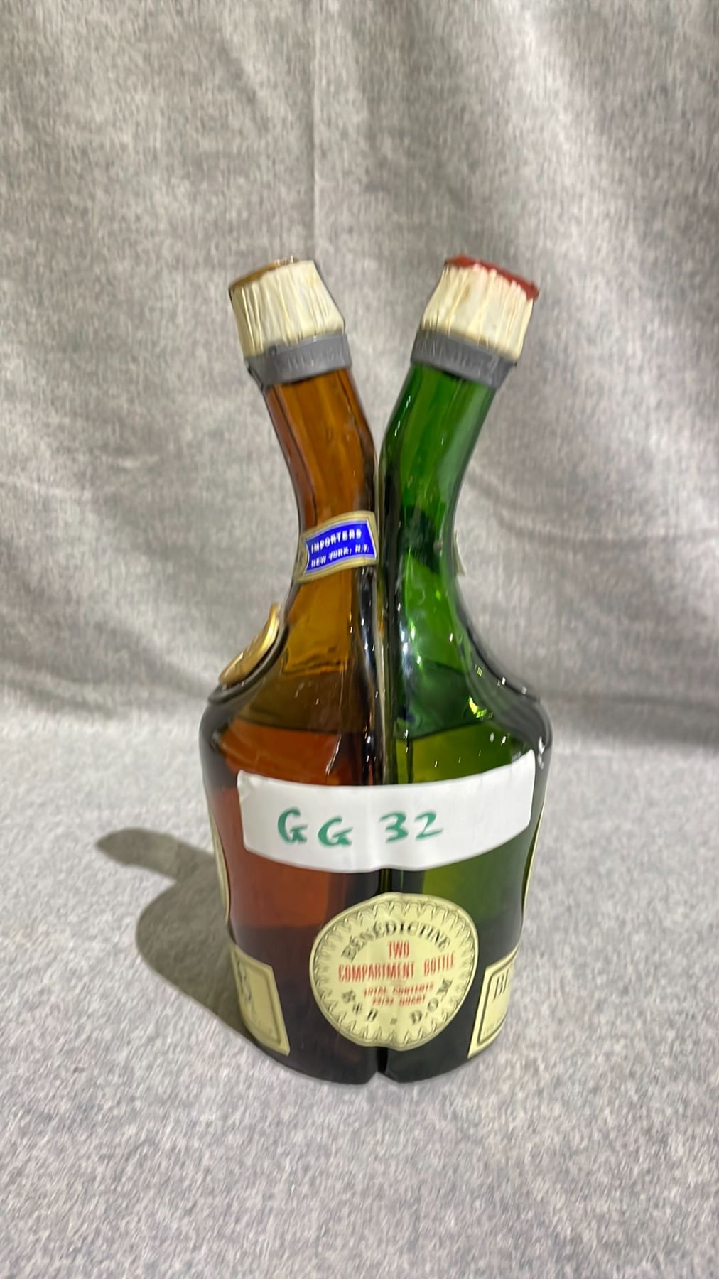 BOTTLE OF VINTAGE BENEDICTINE LIQUOR 2 COMPARTMENT BOTTLE