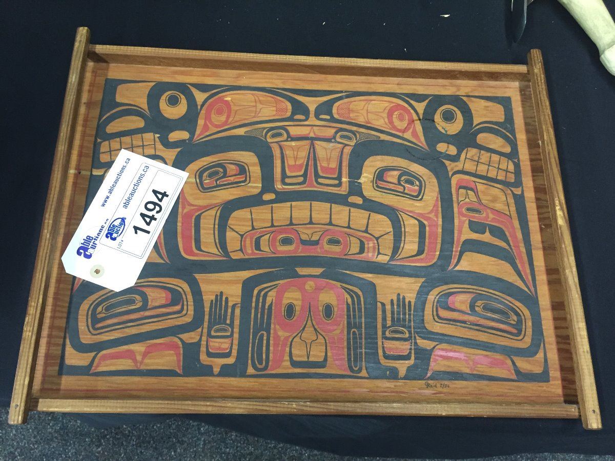 BOX DESIGN, SERVING TRAY, SIGNED G. REID 20" X 15"