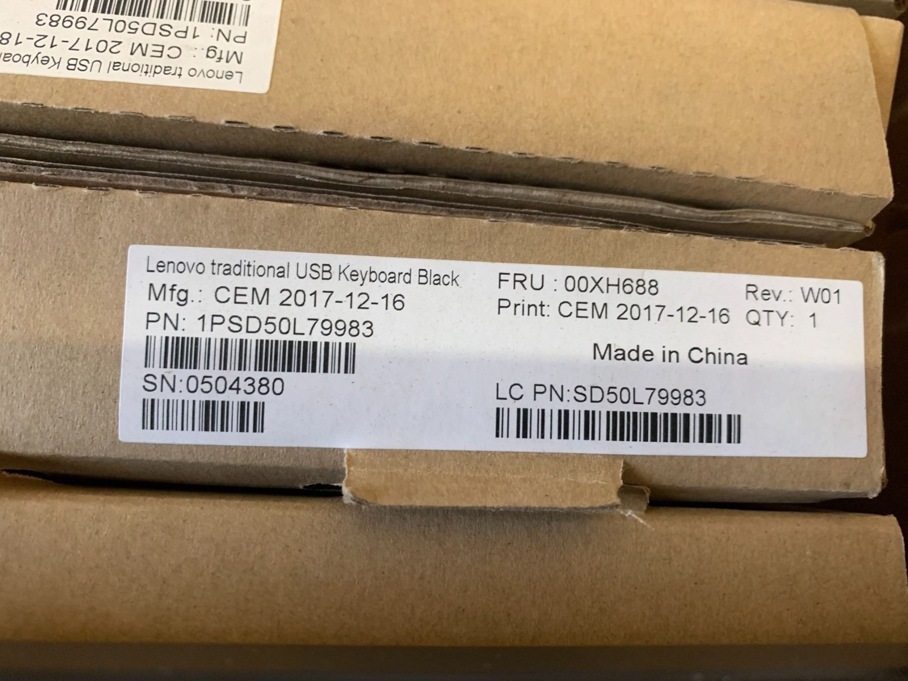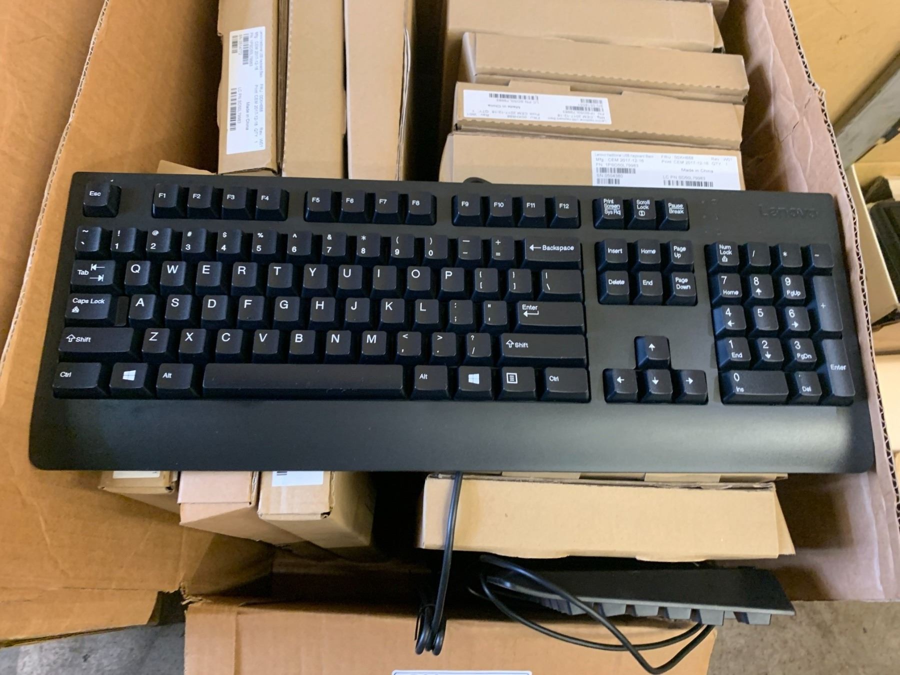 BOX FILLED WITH BLACK LENOVO TRADITIONAL USB KEYBOARDS