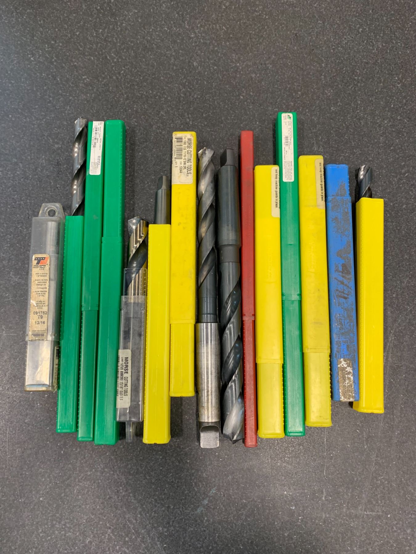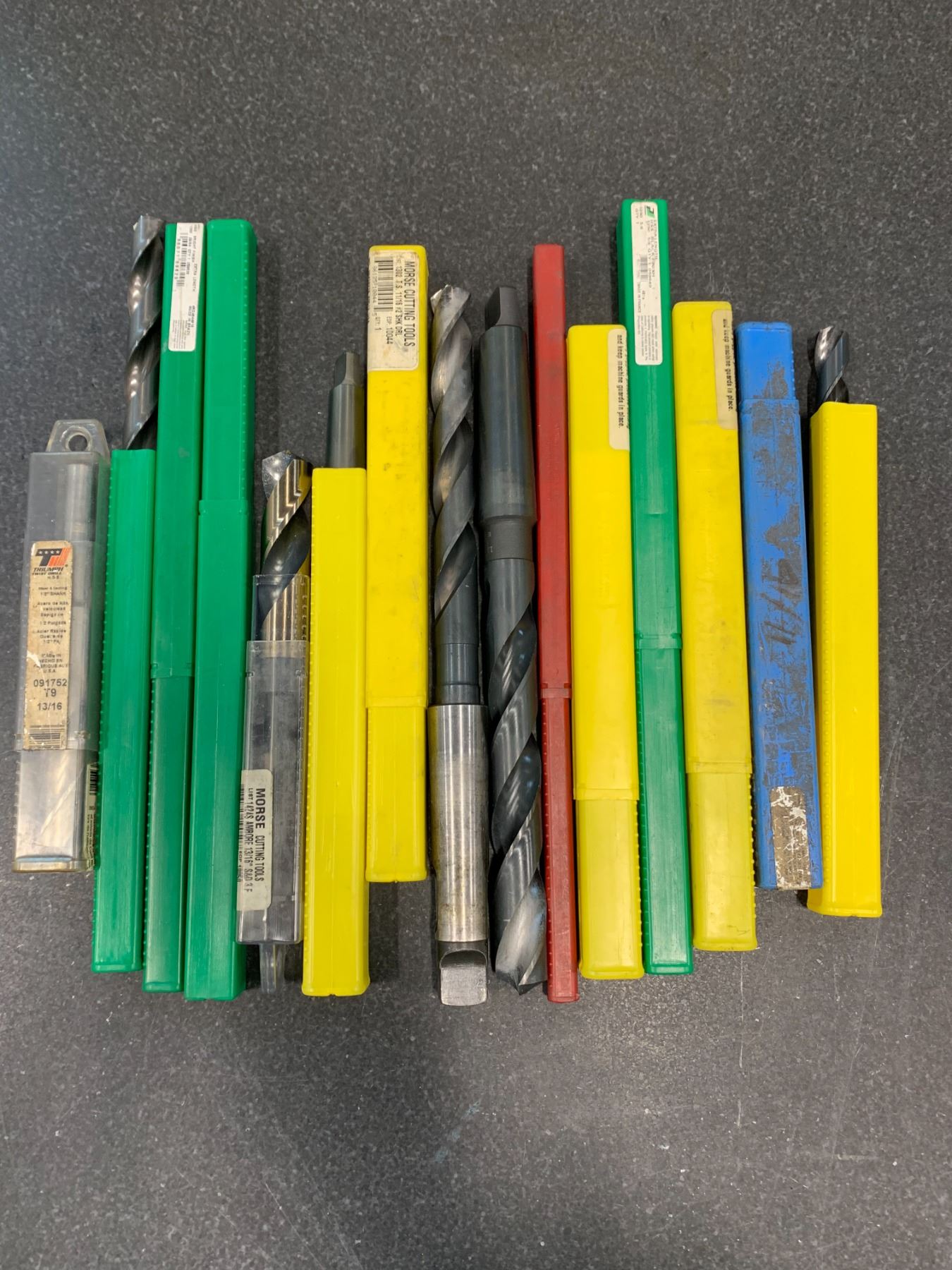BOX FULL OF ASSORTED LARGE DRILL BITS