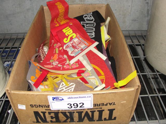 BOX FULL OF VINTAGE COLLECTORS PENNANTS