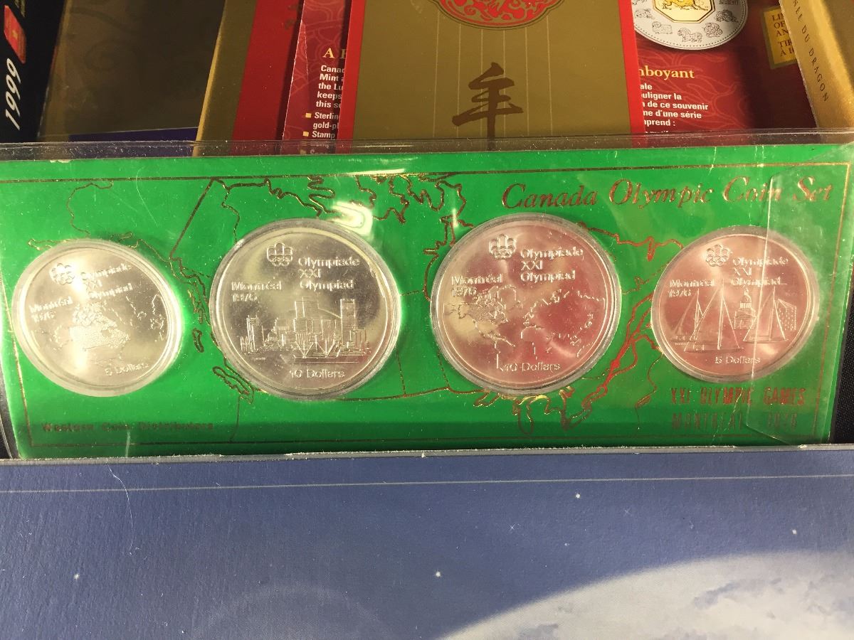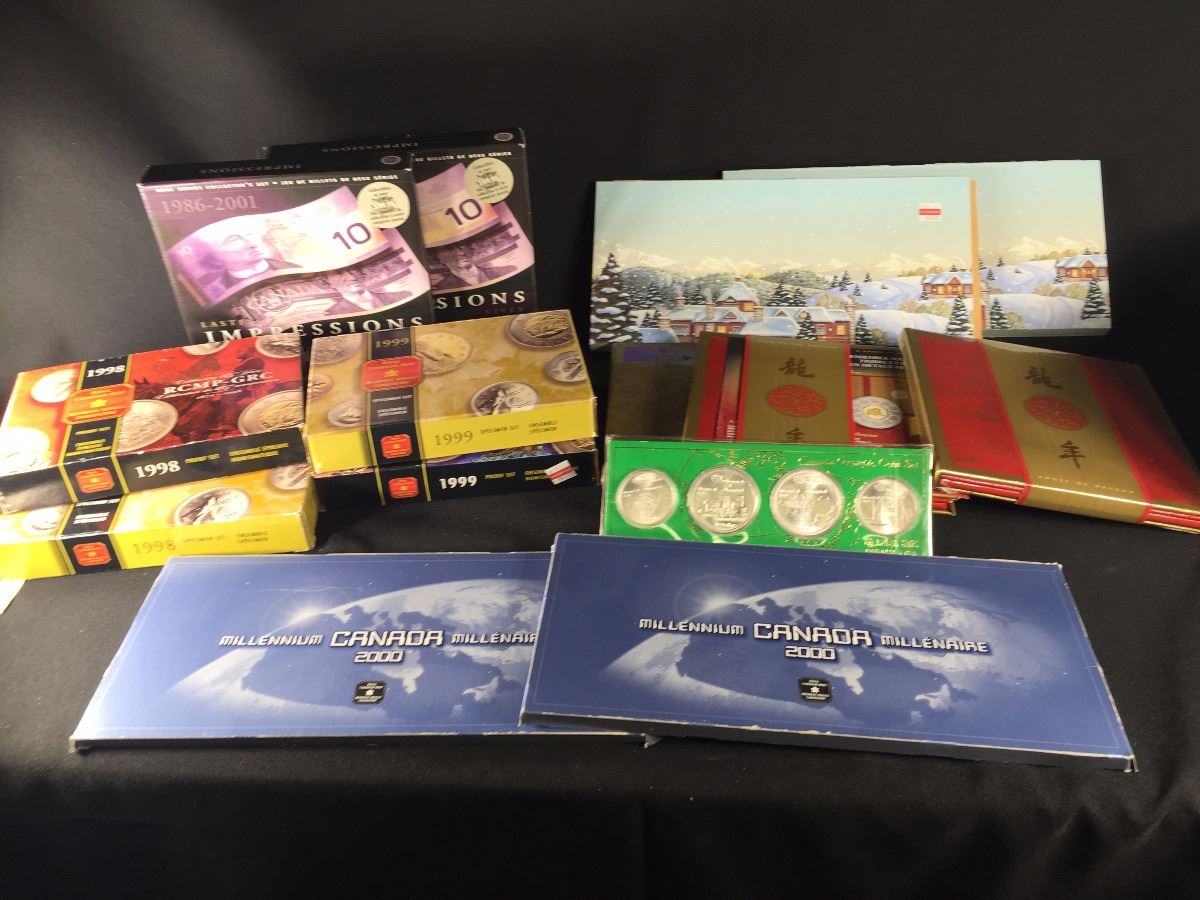 BOX LOT ASSORTED CANADIAN COLLECTABLE COINS PROOF SETS, SPECIMEN SETS AND MORE. A CHOICE DEALERS LOT!