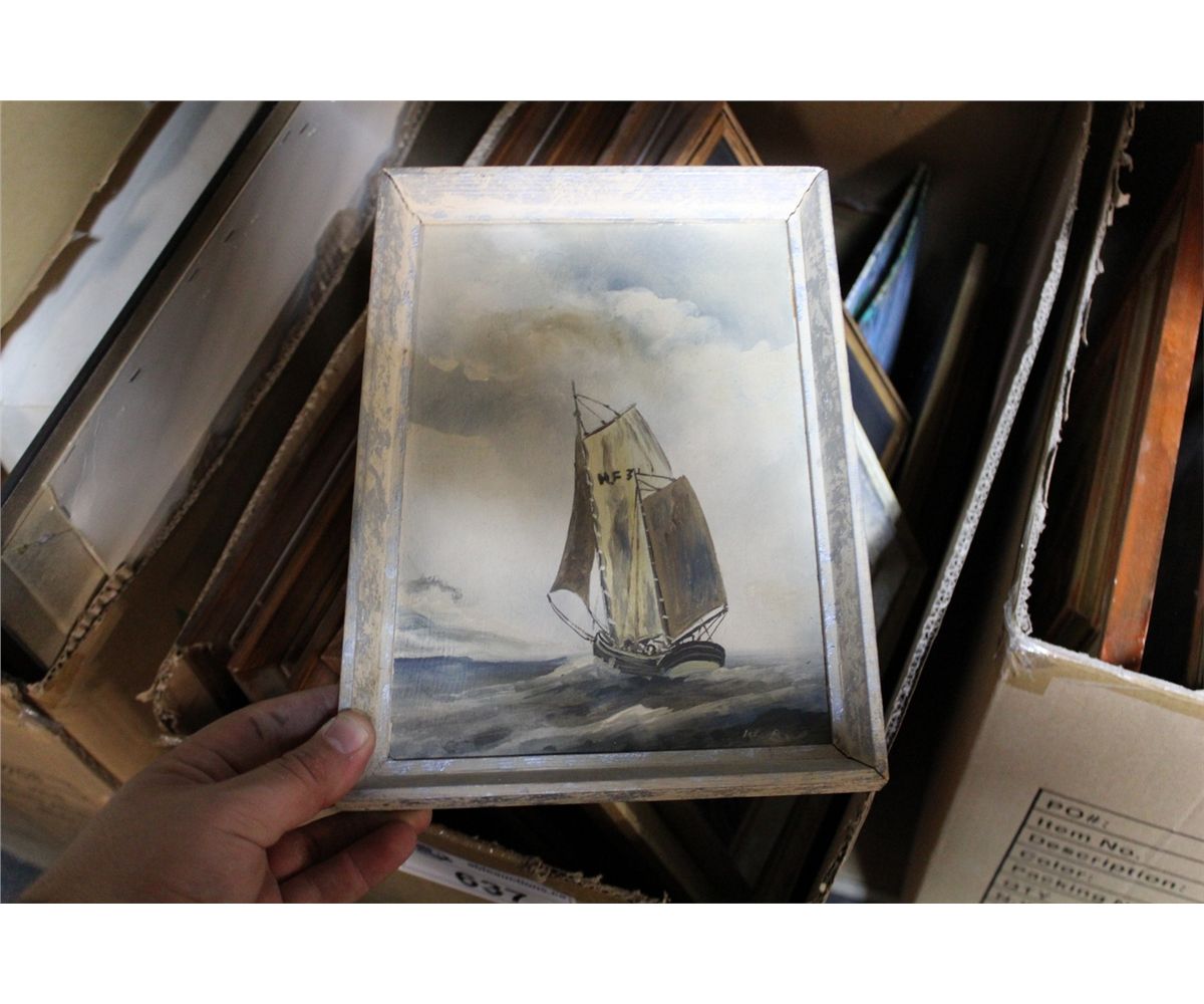 BOX LOT CONTAINING ASSORTED FRAMED PRINTS AND ORIGINAL ARTWORK ALL NET PROCEEDS FROM THE SALE OF THIS ARTWORK WILL BE DONATED TO THE SQUAMISH FOOD BANK