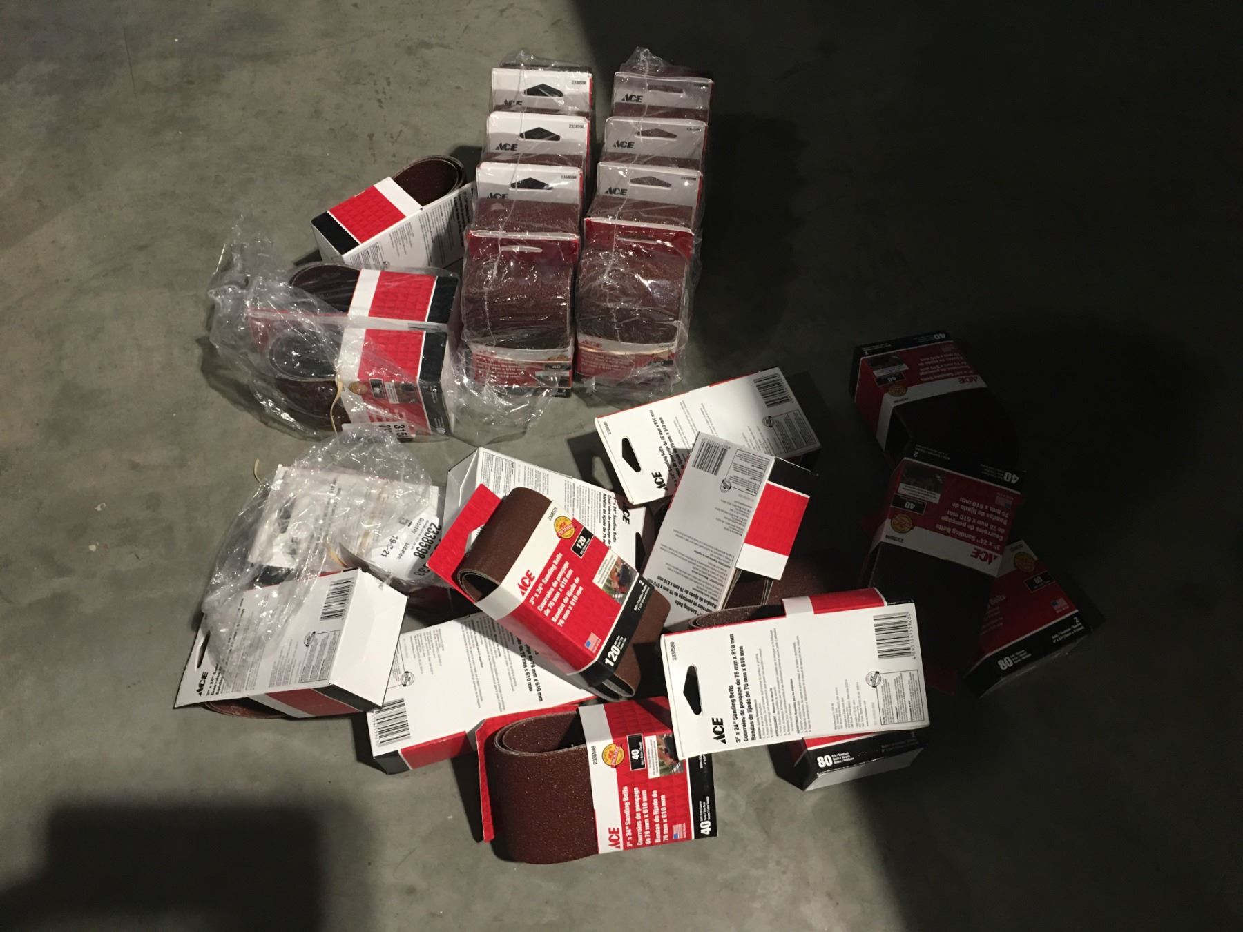 BOX LOT OF 3" X 24" SANDING BELTS 26 PACKS OF 2 BELTS (APPROX 52)
