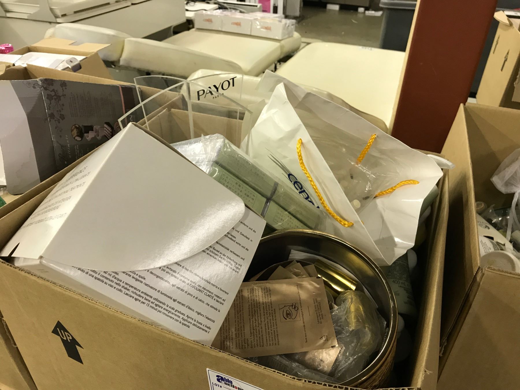 BOX LOT OF ASSORTED COSMETIC SUPPLIES/PRODUCT/INVENTORY