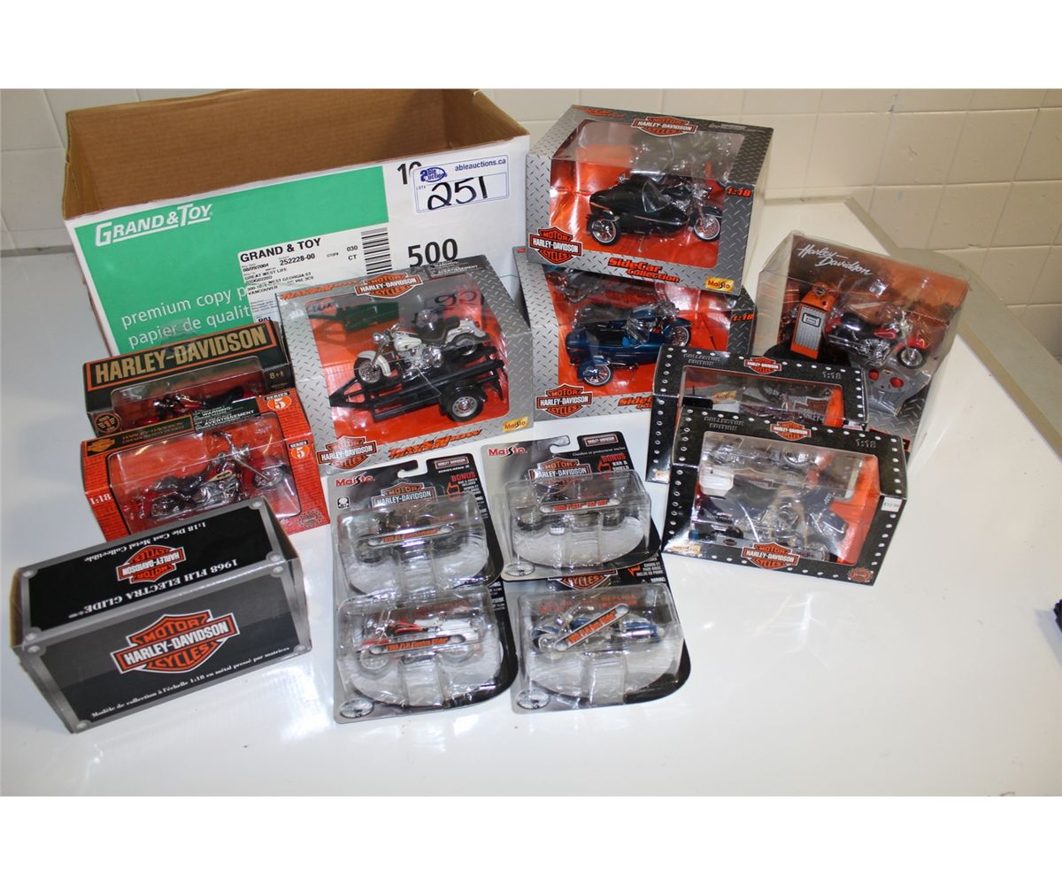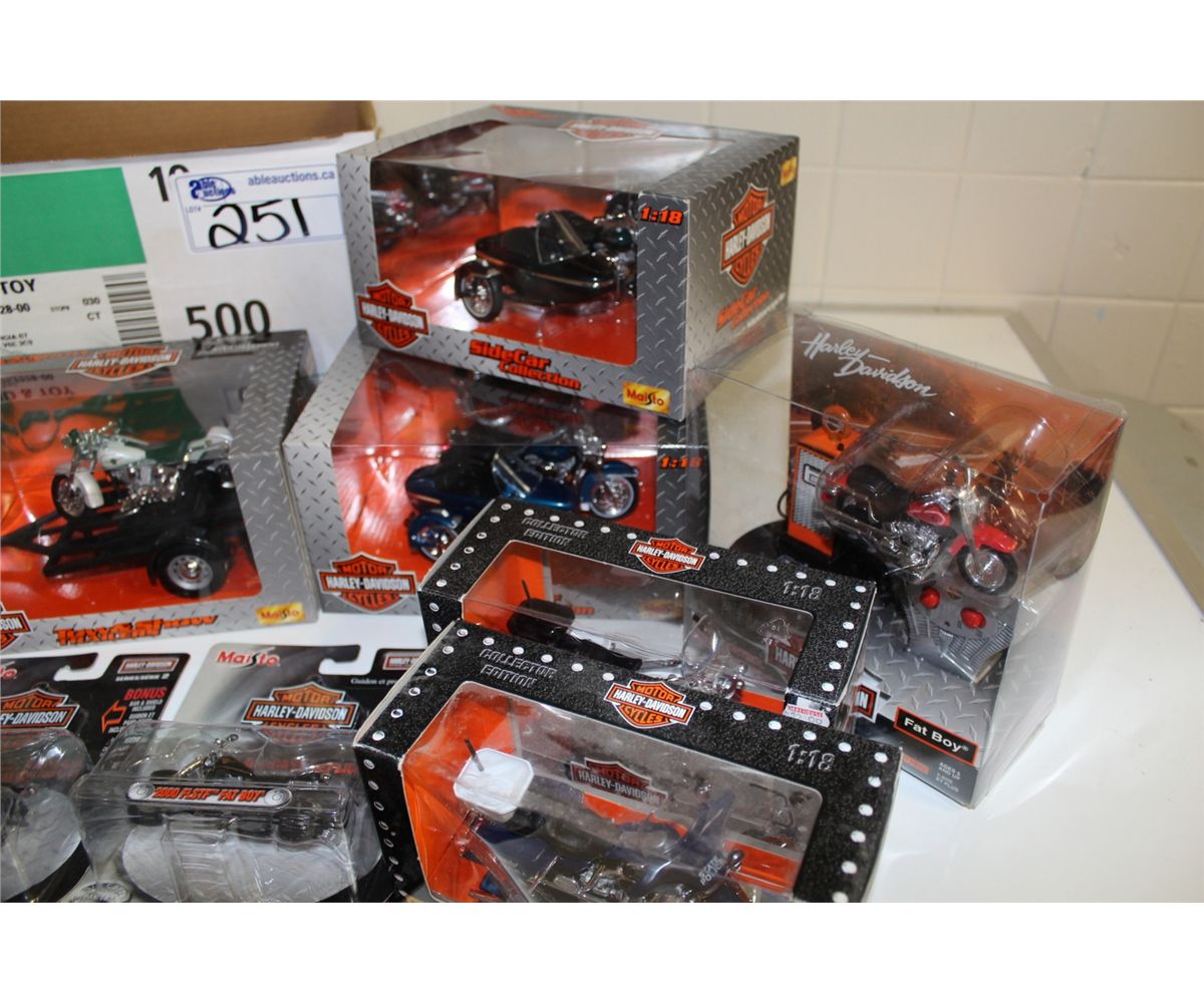 BOX LOT OF ASSORTED HARLEY DAVIDSON DIE CAST MODELS NEW IN BOX