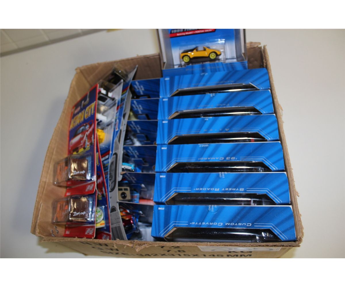 BOX LOT OF ASSORTED HOT WHEELS AND REALTOY DIE CAST MODELS NEW IN BOX