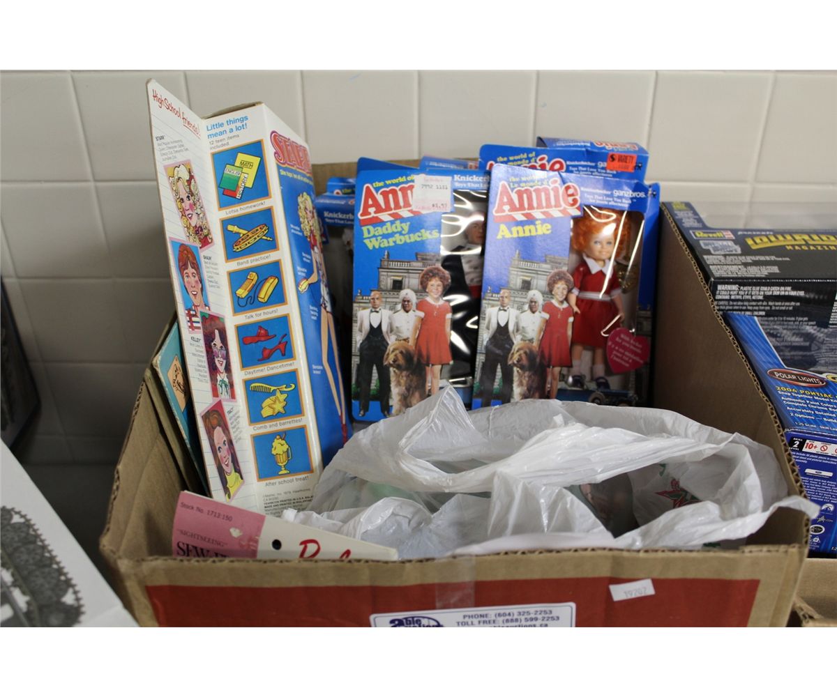 BOX LOT OF ASSORTED MCDONALDS TOYS, ANNIE AND STARR FIGURES