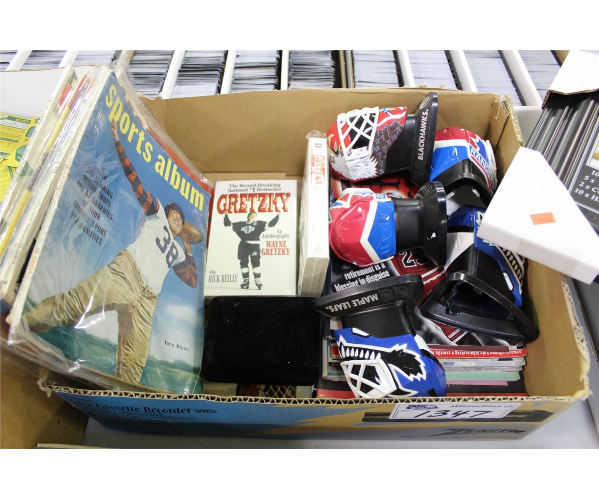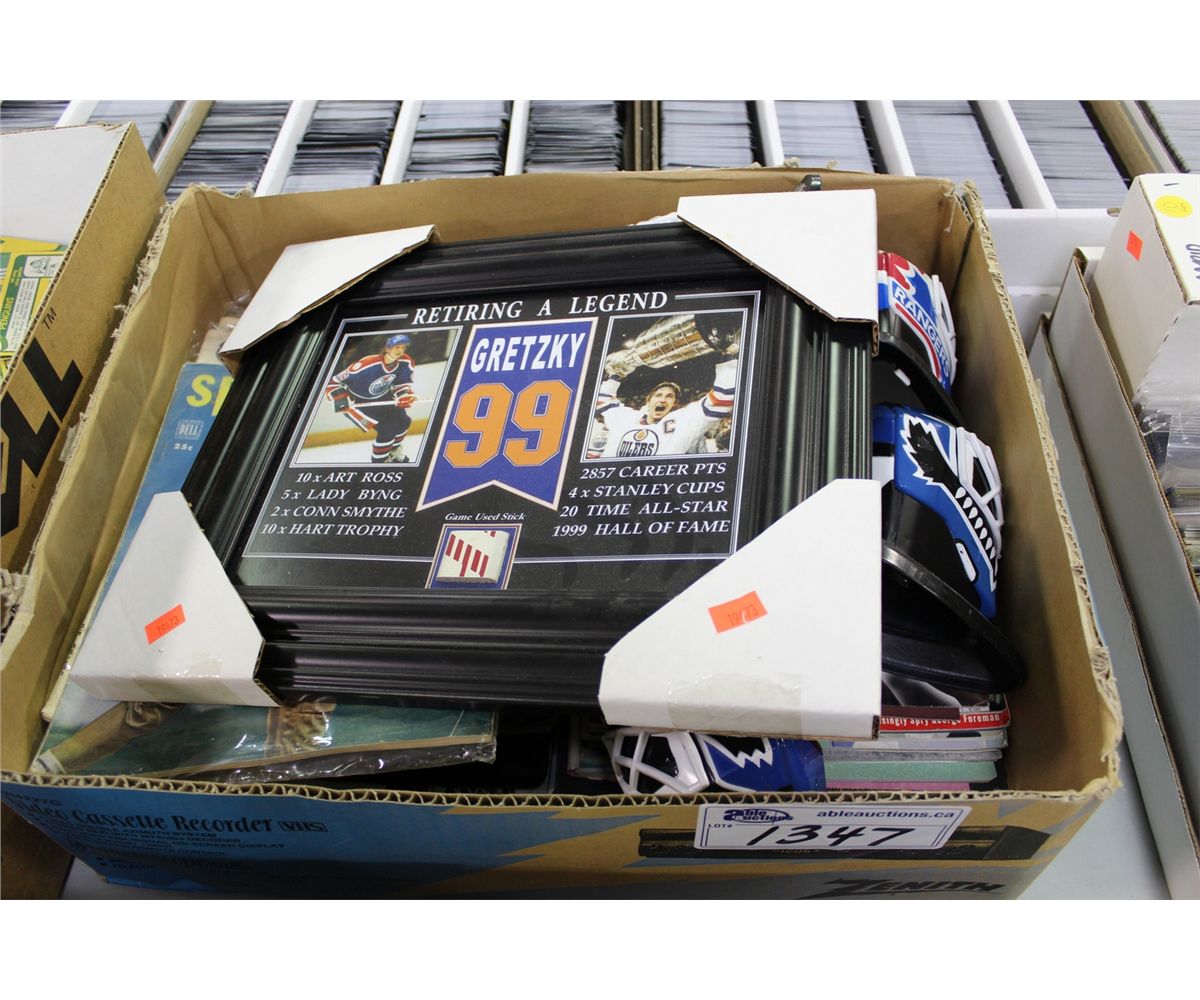 BOX LOT OF ASSORTED NHL, GRETZKY MEMORABILIA PLUS VINTAGE DELL SPORTS ALBUMS