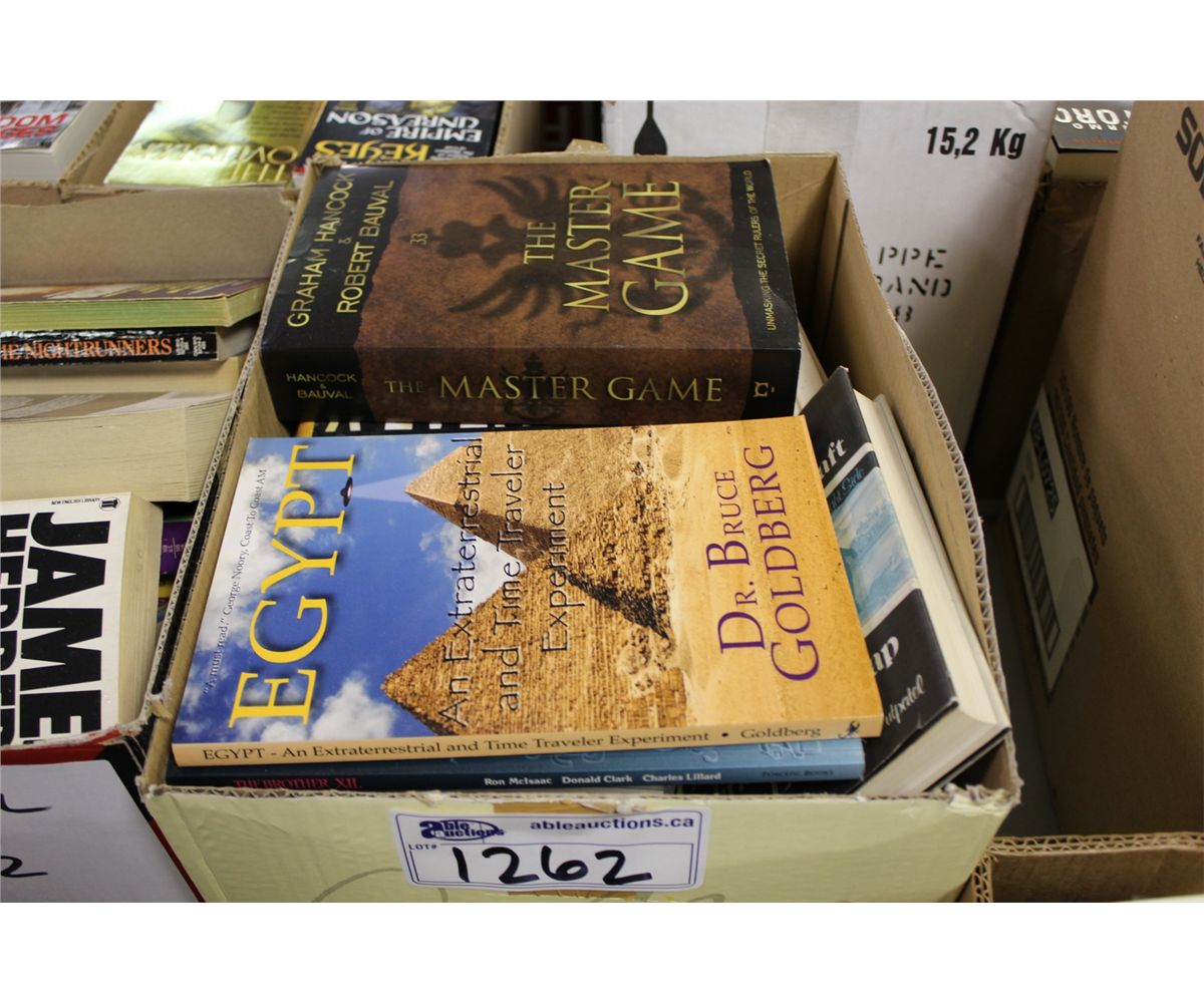BOX LOT OF ASSORTED PAPERBACK AND HARD COVER BOOKS, MOSTLY UNREAD