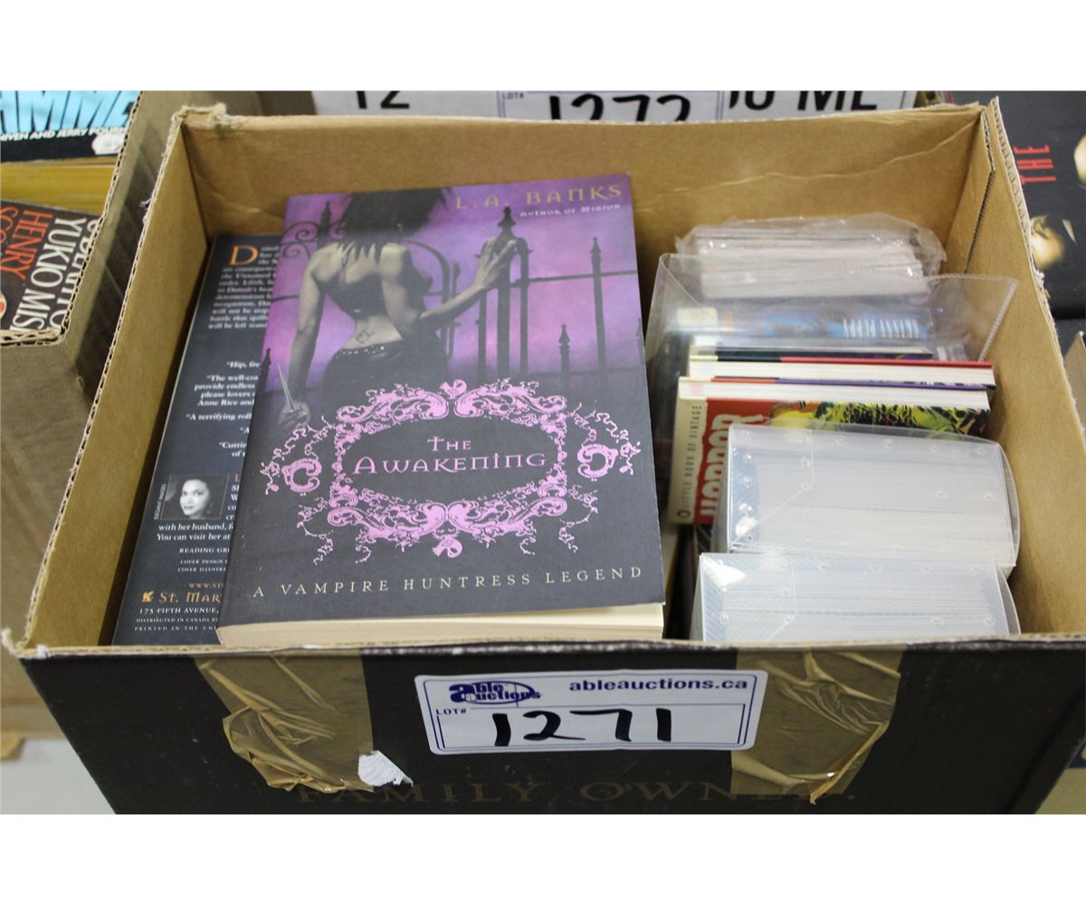 BOX LOT OF ASSORTED PAPERBACK AND HARD COVER BOOKS, MOSTLY UNREAD