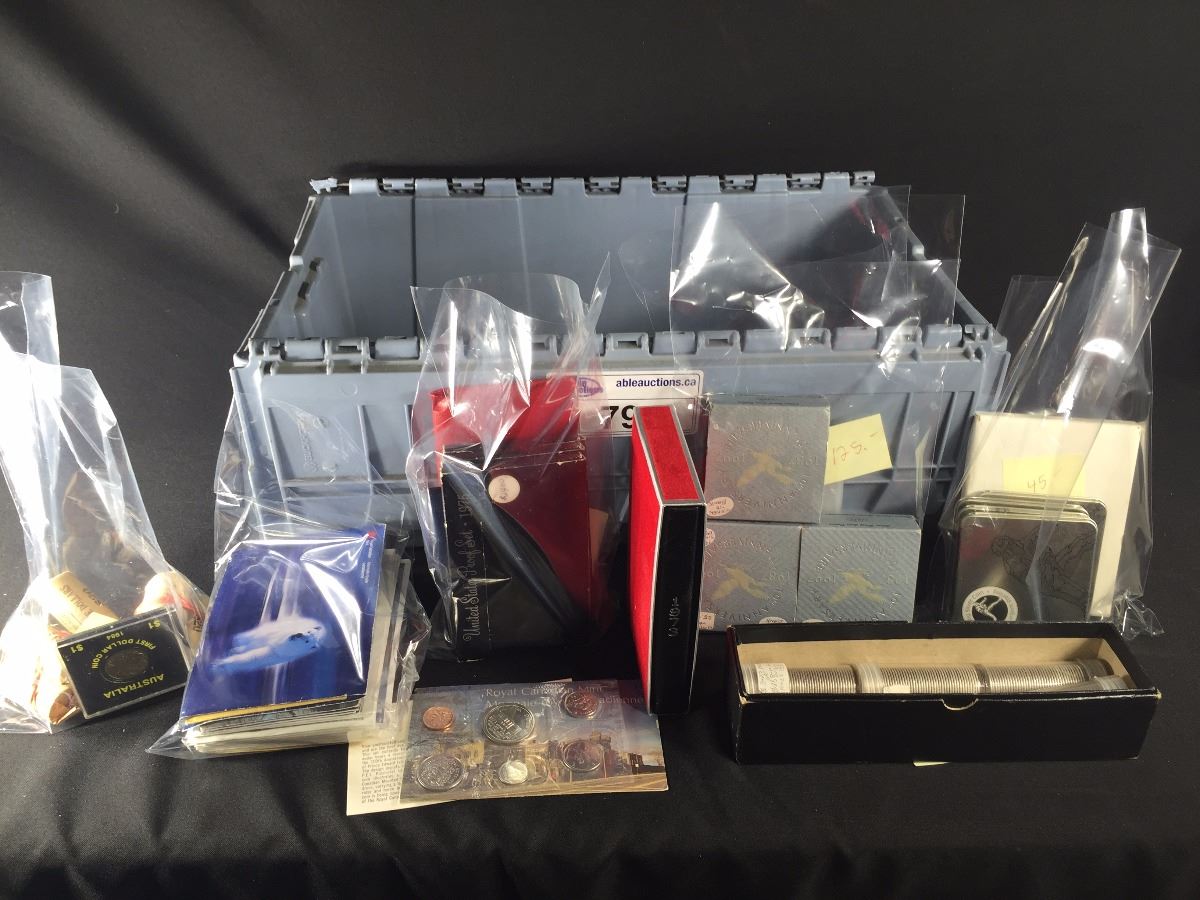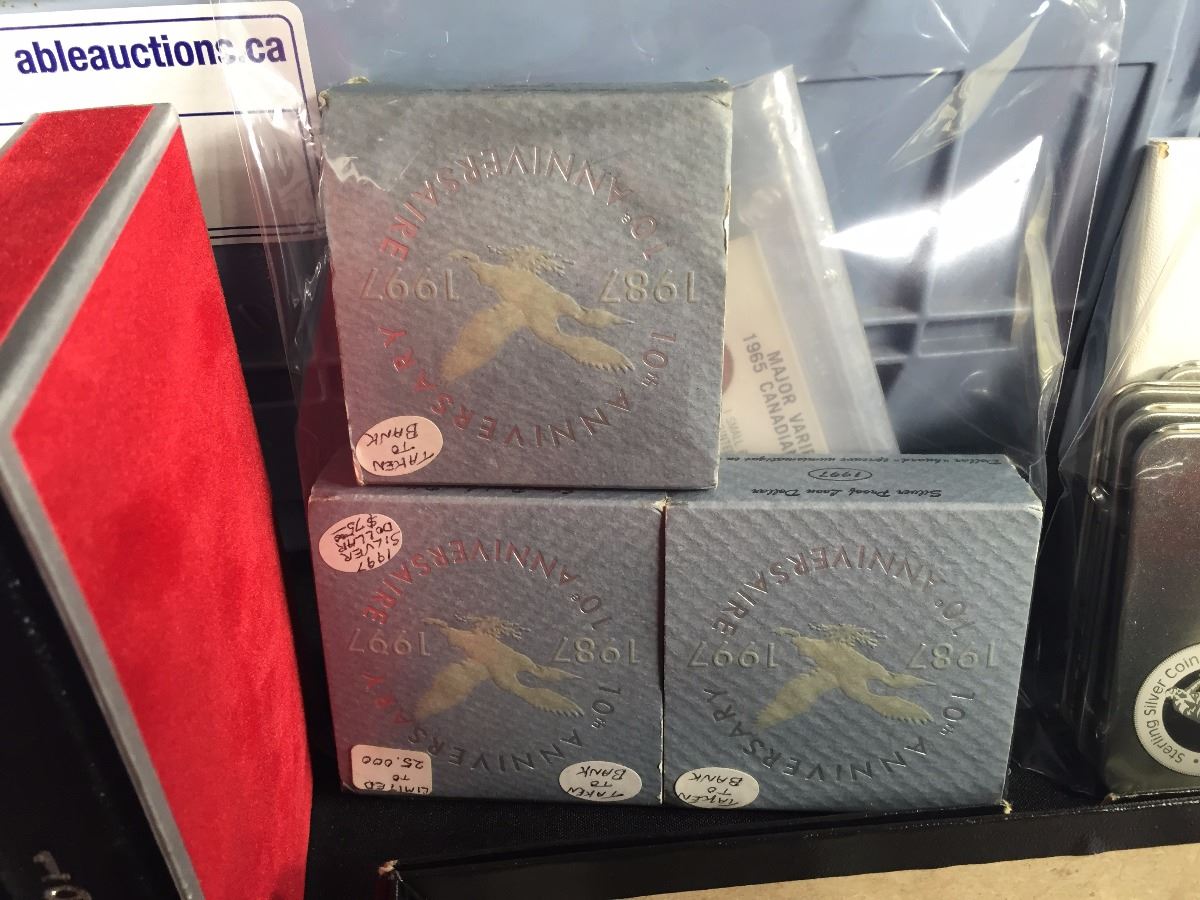 BOX LOT OF COLLECTABLE CANADIAN COMMEMORATIVE COINS AND PROOF SETS. A CHOICE DEALERS LOT!