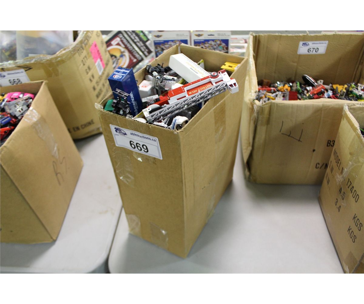 BOX LOT OF MAJORETTE AND OTHER MODEL TRUCKS AND MORE