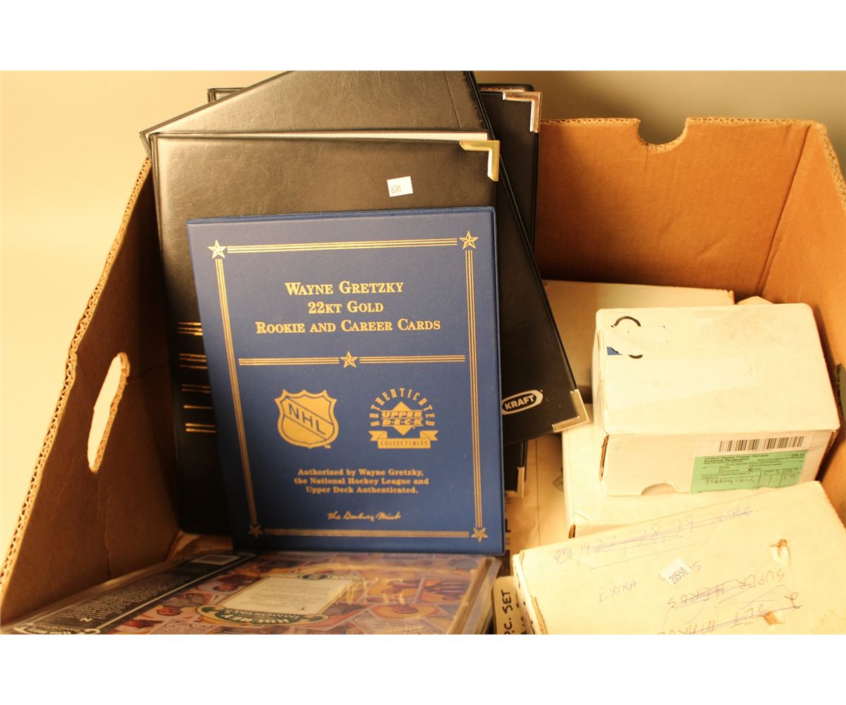 BOX LOT OF MOSTLY 90'S CARDS, WAYNE GRETZKY 22KT GOLD CARDS, KRAFT SETS AND MORE!