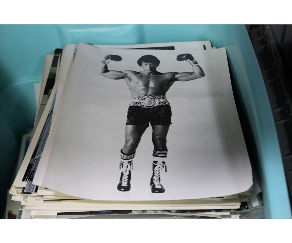 BOX LOT OF MOVIE POSTERS AND STILL PHOTOS (TEAL TUB)