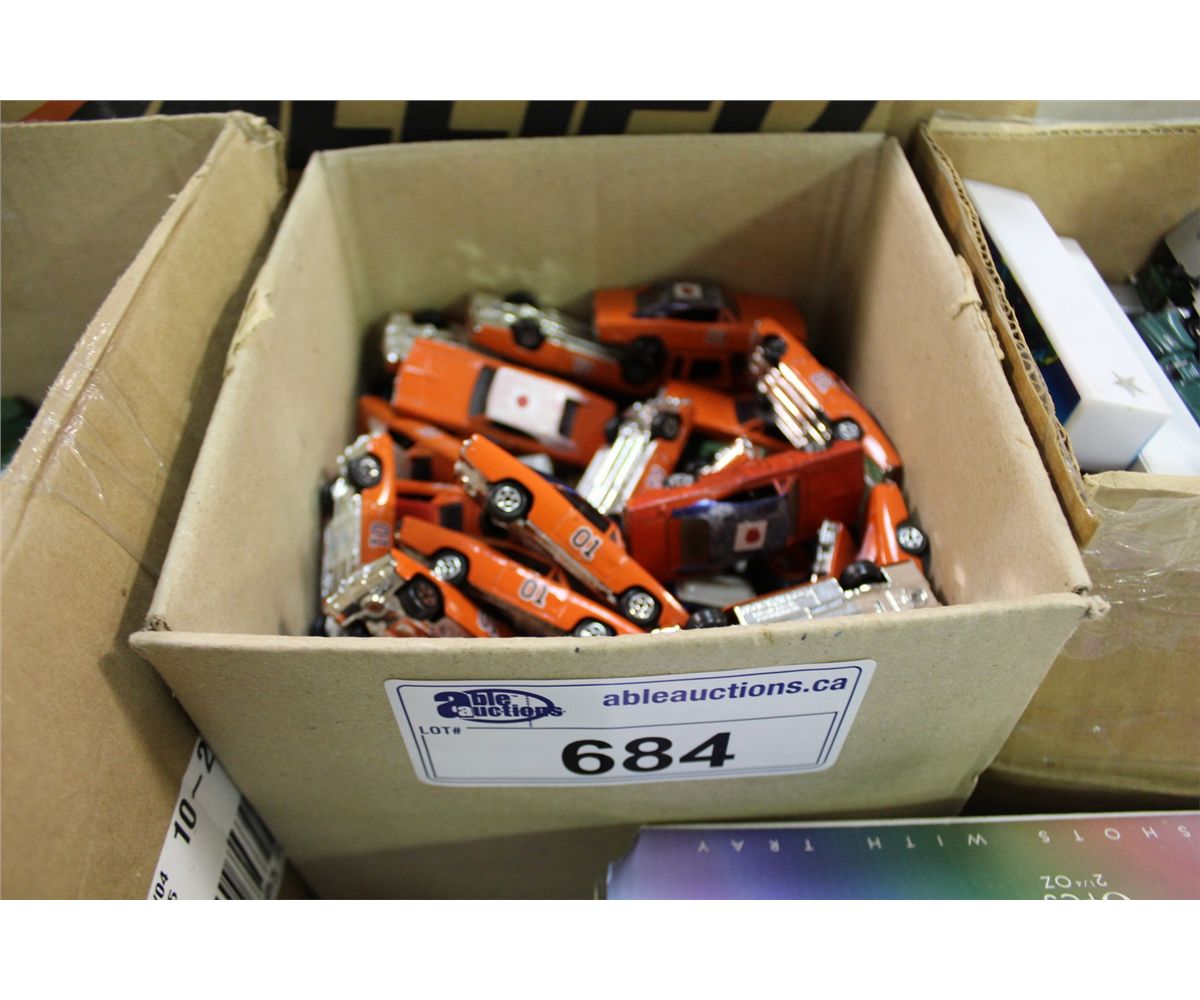 BOX LOT OF VINTAGE REPLICA DUKES OF HAZARD "GENERAL LEE" DIE CAST CARS