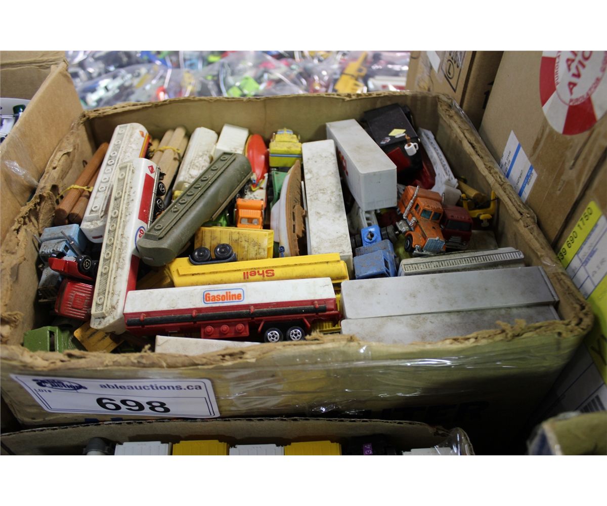 BOX LOT OF VINTAGE TO NEWER DIE CAST TRUCKS