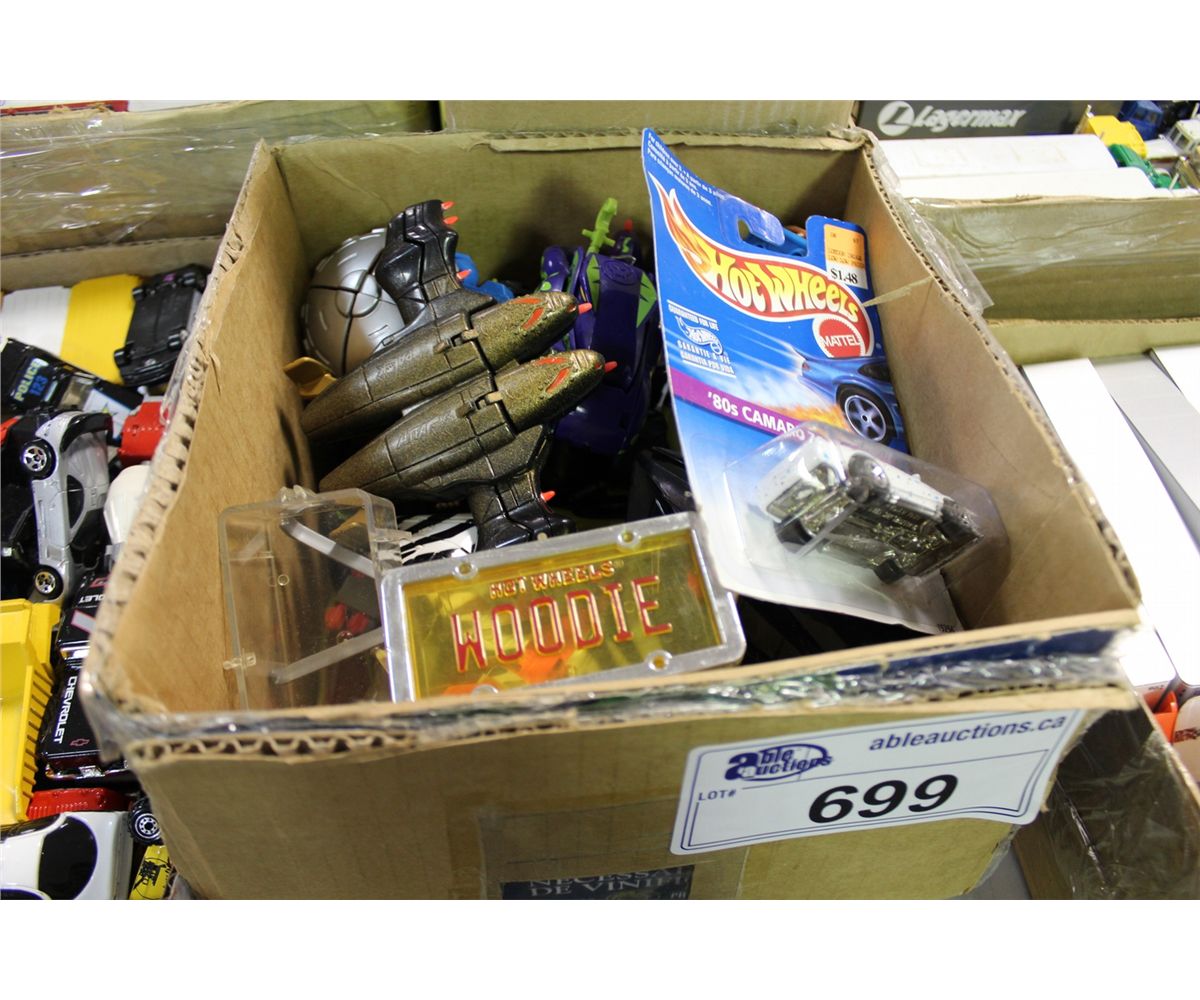 BOX LOT OF VINTAGE TO NEWER DIE CAST VEHICLES AND TOYS