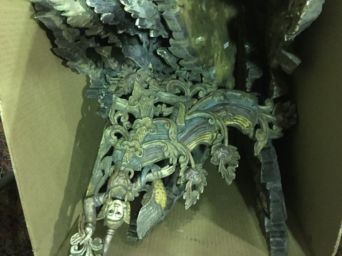 BOX OF 12 INTRICATELY CARVED WOODEN DECORATIVE TIBETAN PANELS