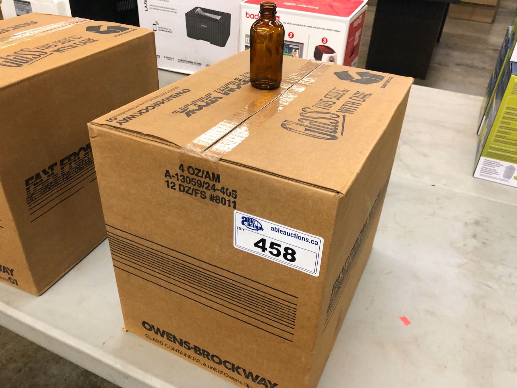 BOX OF 144 CONTAINERS OF AMBER BOSTON ROUND GLASS BOTTLES