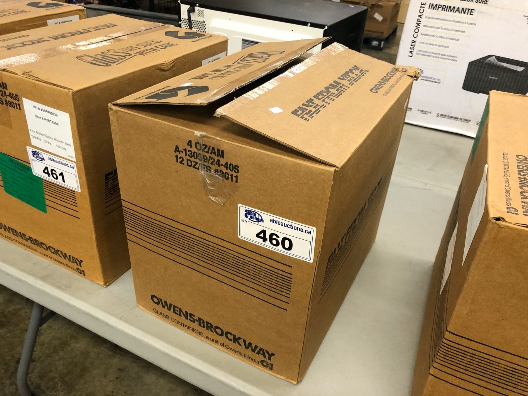 BOX OF 144 CONTAINERS OF AMBER BOSTON ROUND GLASS BOTTLES